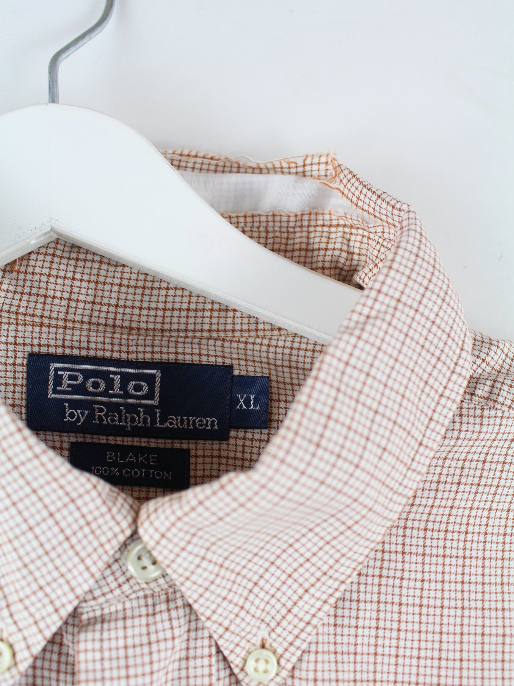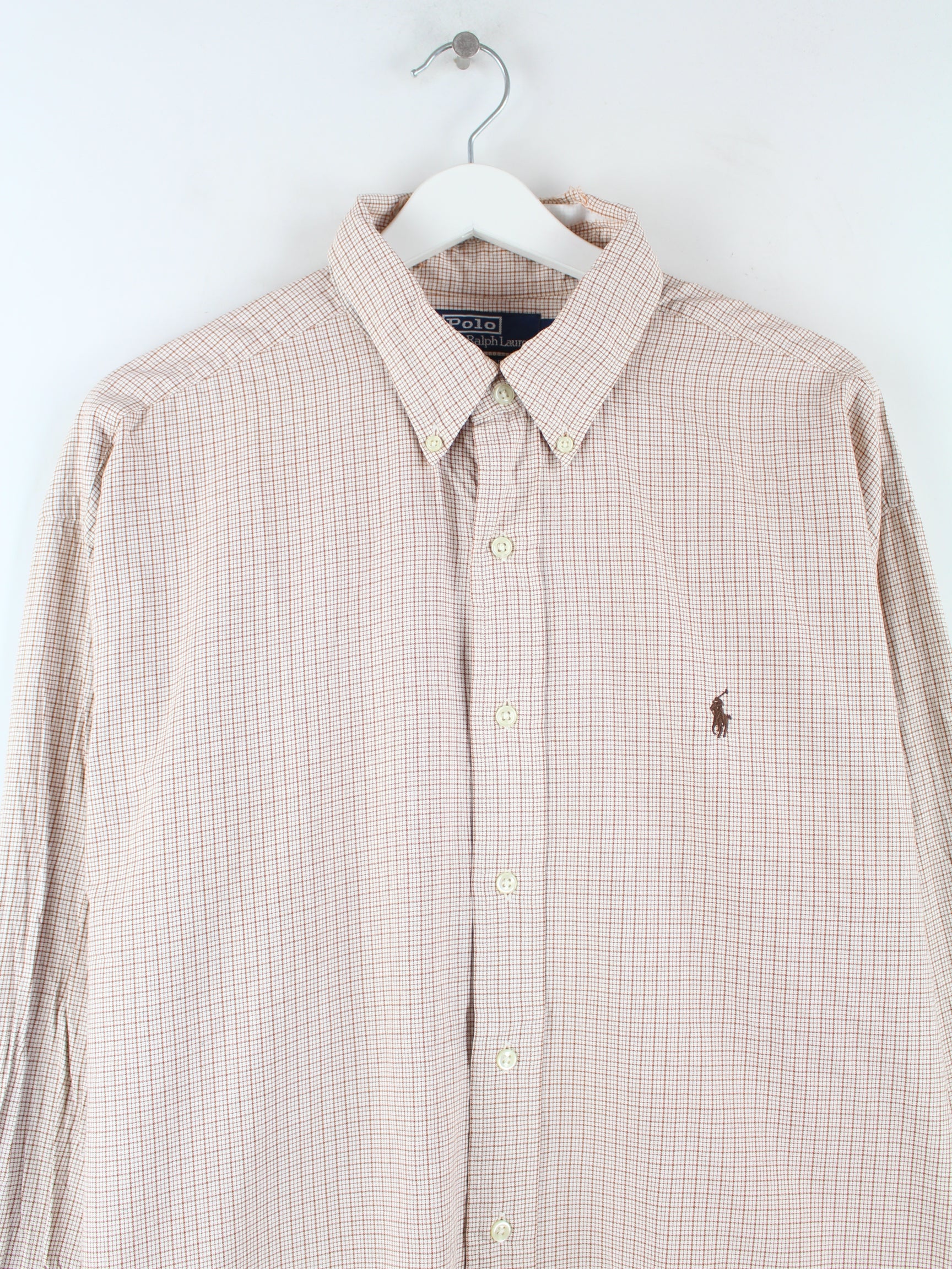 Braunes Freizeit Hemd von Ralph Lauren aus den 90'ern in Größe XL. Es ist aus Baumwolle hergestellt. Den Zustand würden wir als 'In Ordnung' bezeichnen (vergl. Bilder).a