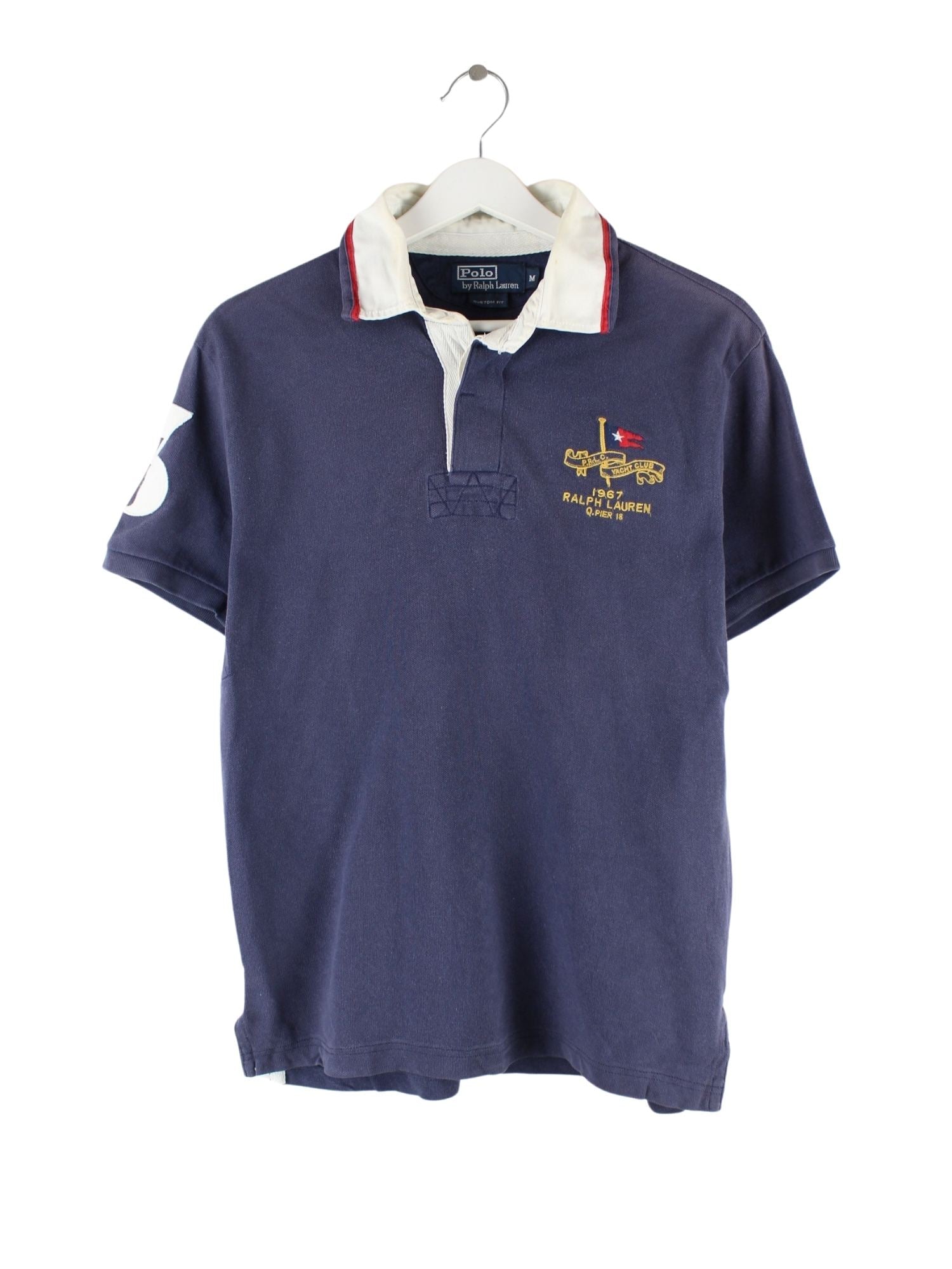 Poloshirt der Marke Ralph Lauren in Größe M aus den 90'ern. Es ist aus Baumwolle hergestellt und in Blau zu haben.
