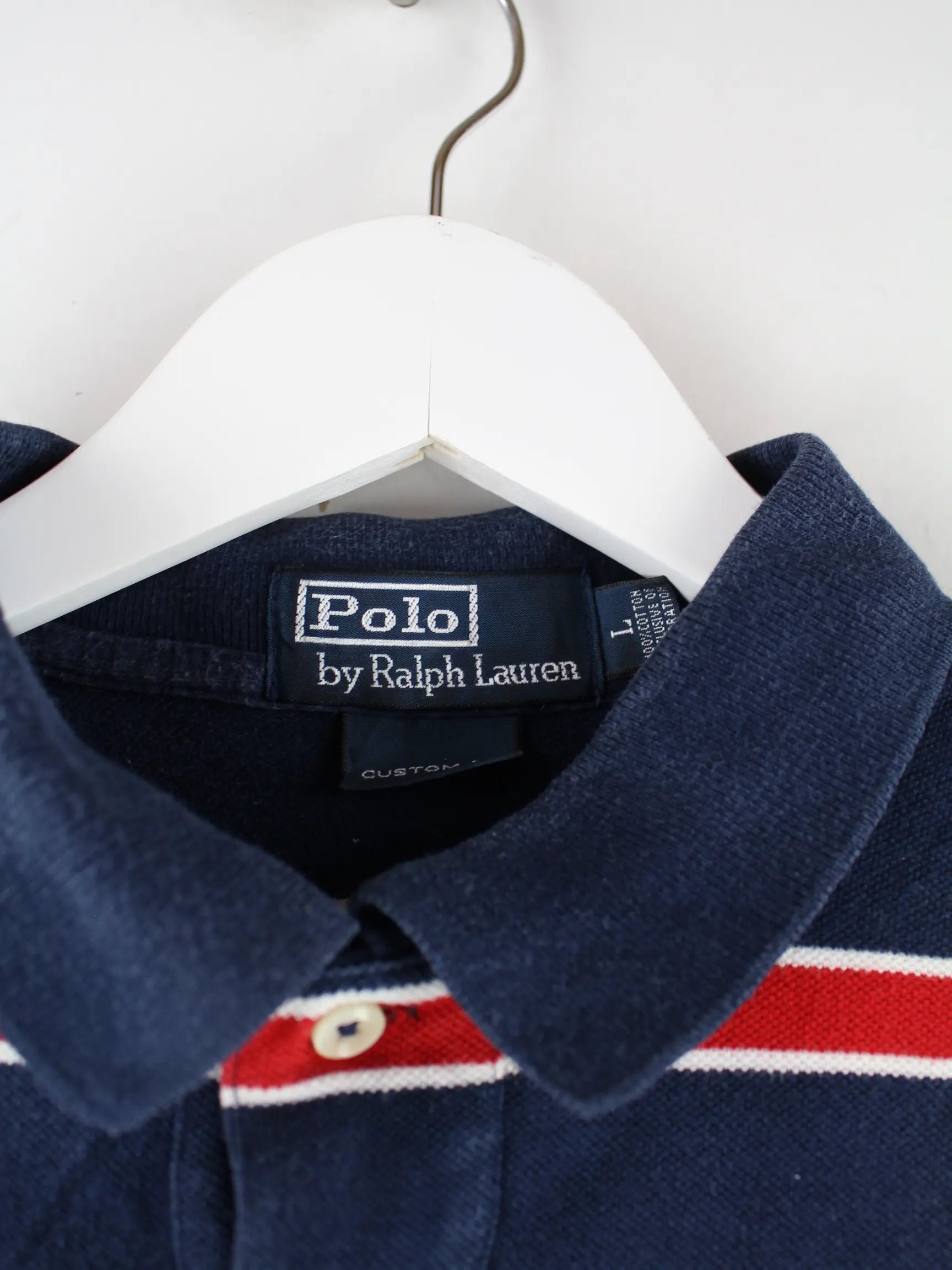Ralph Lauren 90s Vintage Custom Fit Striped Polo Blau L