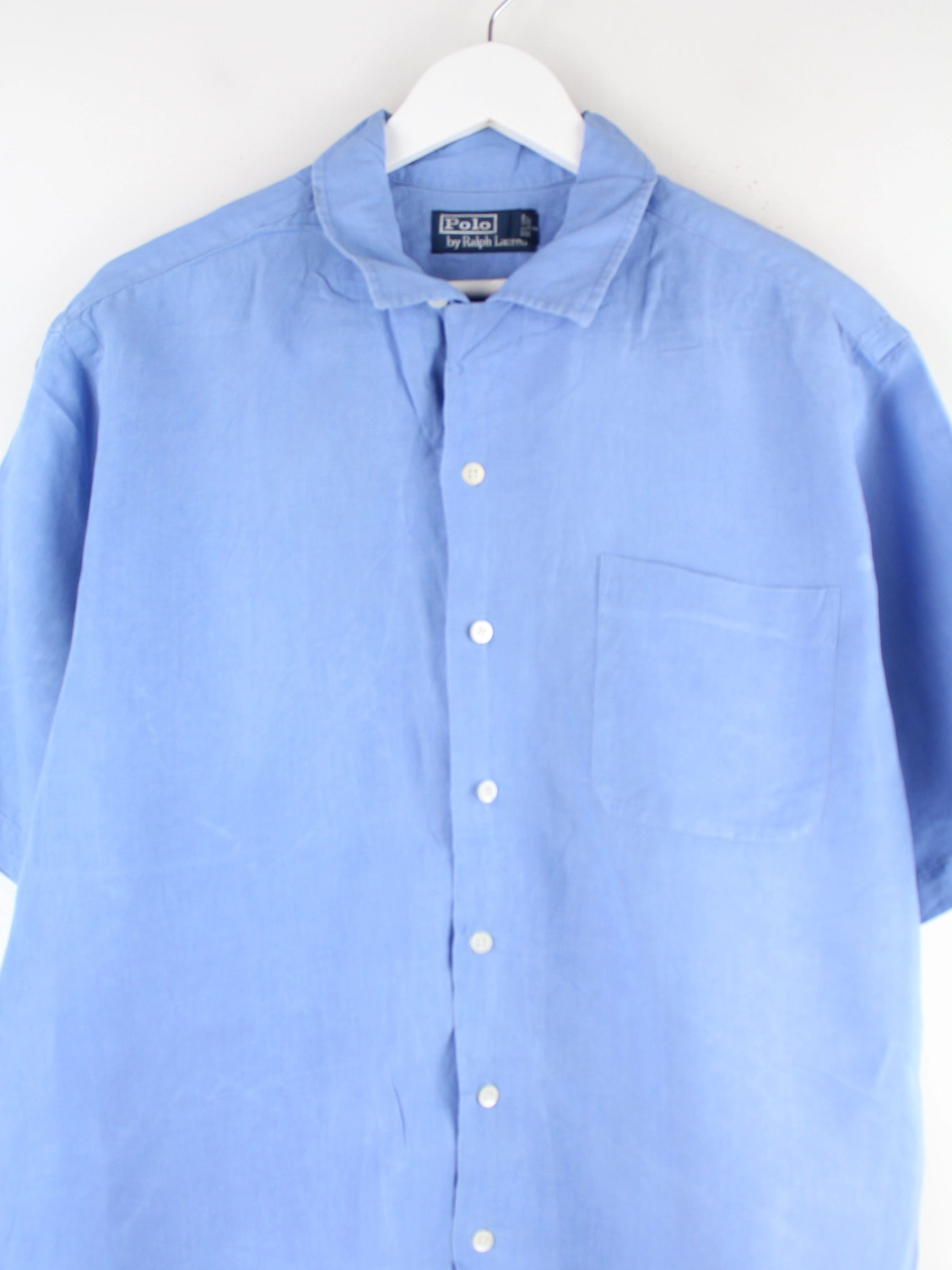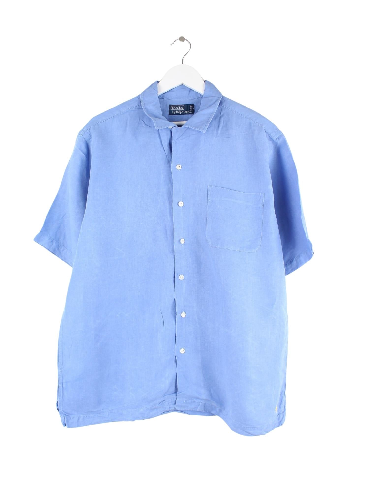 Ralph Lauren 90s Vintage Leinen Kurzarm Hemd Blau XL