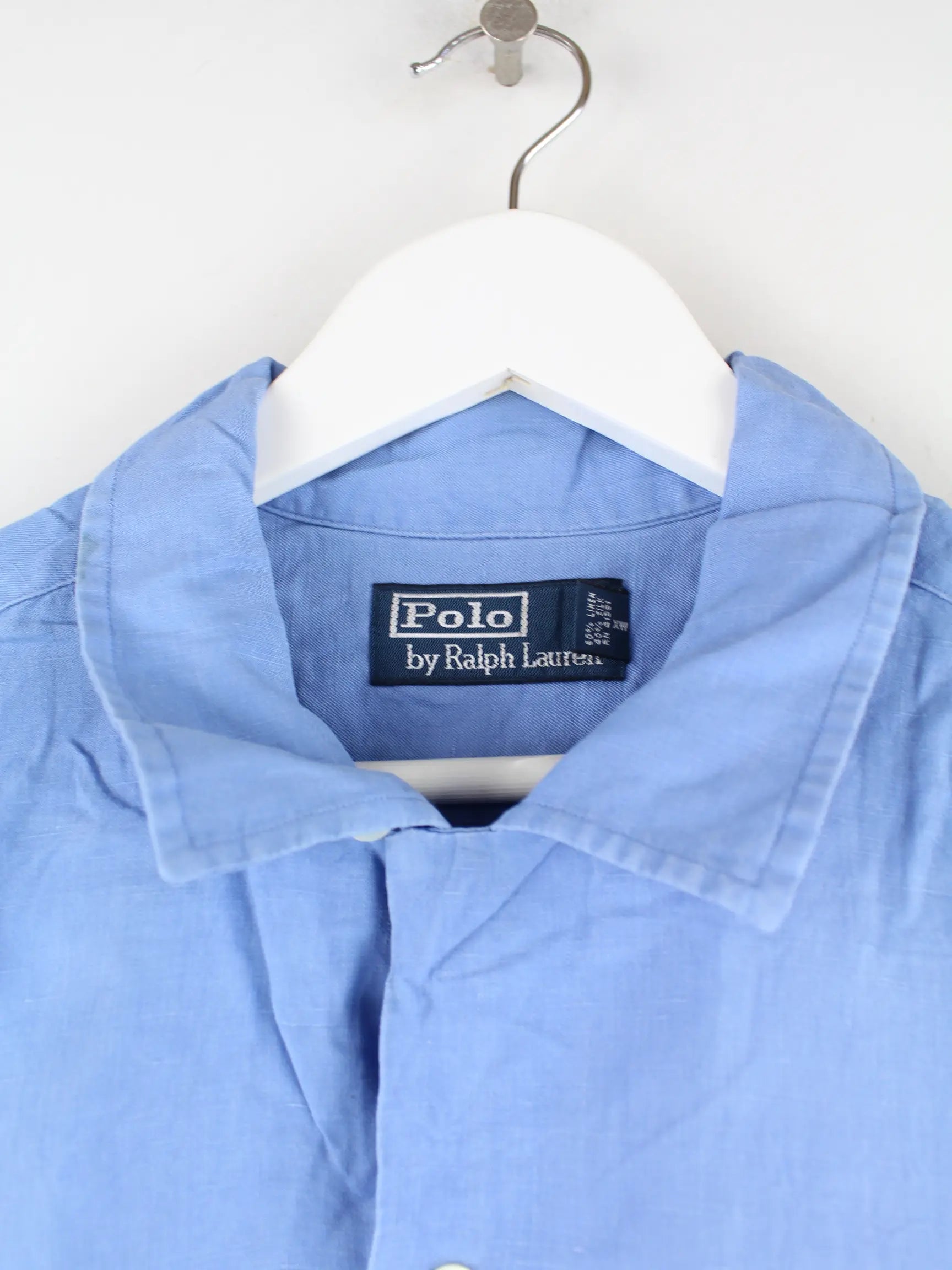 Freizeit Hemd der Marke Ralph Lauren in Größe XL aus den 90'ern. Es ist aus Leinen gemacht und in Blau lieferbar.