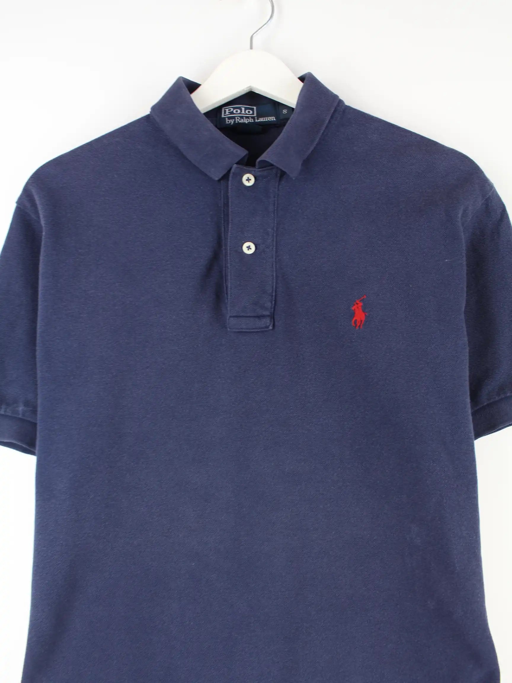Poloshirt von Ralph Lauren in Größe S aus den 90'ern. Es ist aus Baumwolle und in Blau bei uns vorrätig.