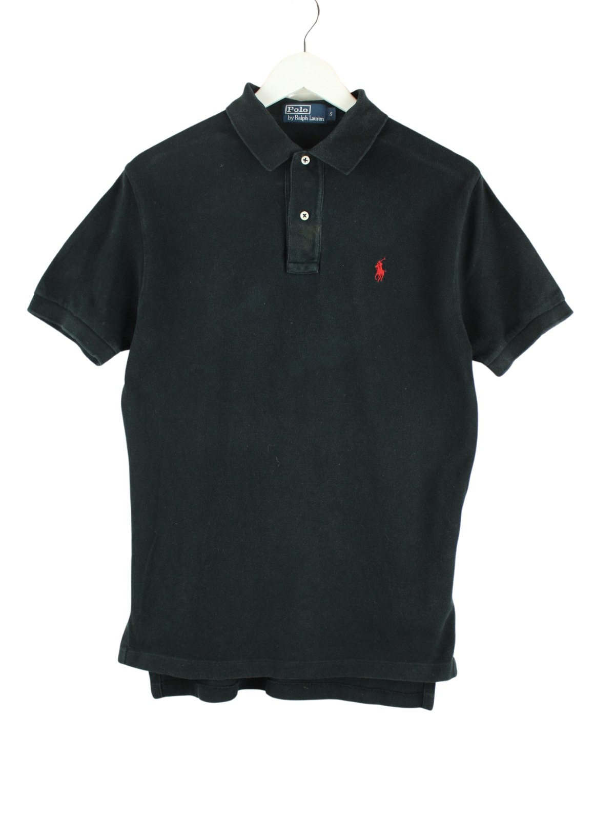 Poloshirt der Brand Ralph Lauren in Größe S aus den 90'ern. Es ist aus einer Baumwollmischung angefertigt und in Schwarz lieferbar.