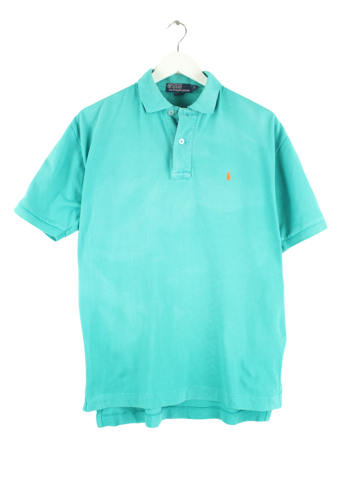 Poloshirt aus dem Hause Ralph Lauren in Größe M aus den 90'ern. Es ist aus Baumwolle hergestellt und in Türkis bei uns zu bekommen.