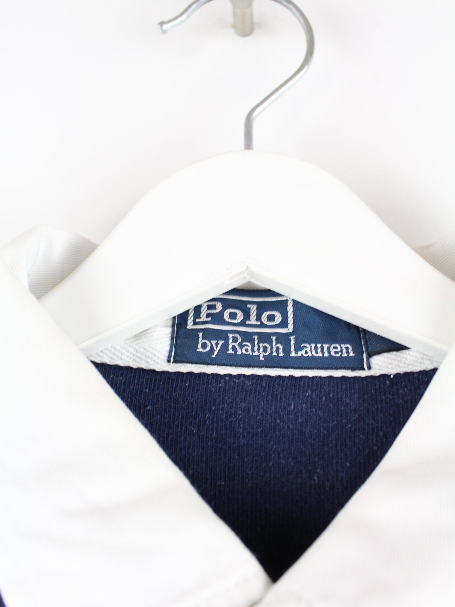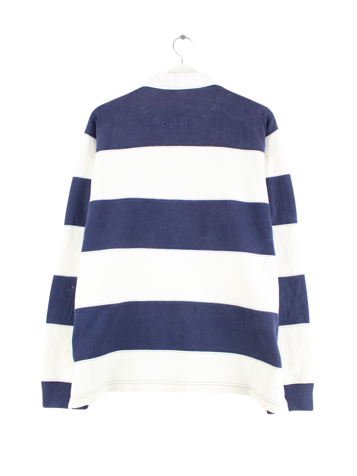 Ralph Lauren 90s Vintage Striped Langarm Polo Blau/Weiß L