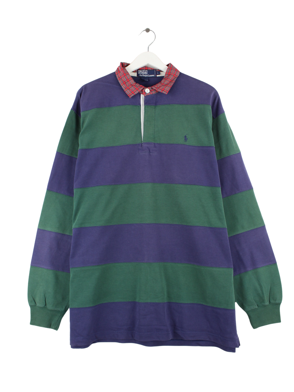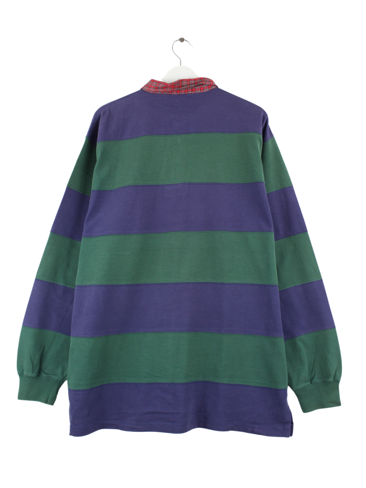 Ralph Lauren 90s Vintage Striped Langarm Polo Blau / Grün XL