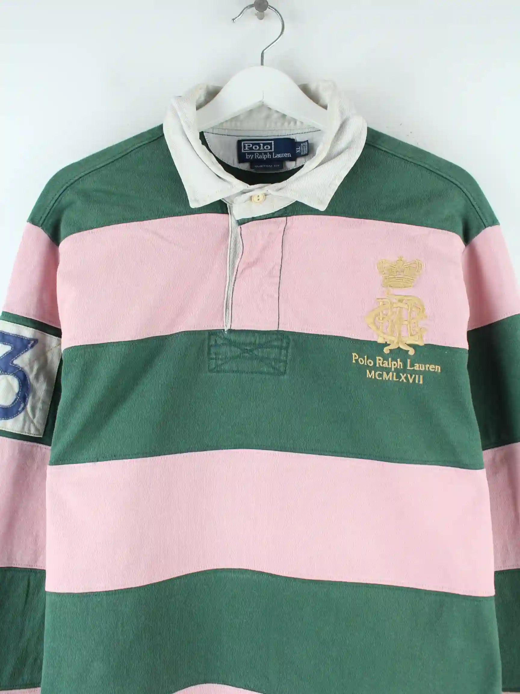 Ralph Lauren 90s Vintage Striped Rugby Polo Langarm Polo Grün XL
