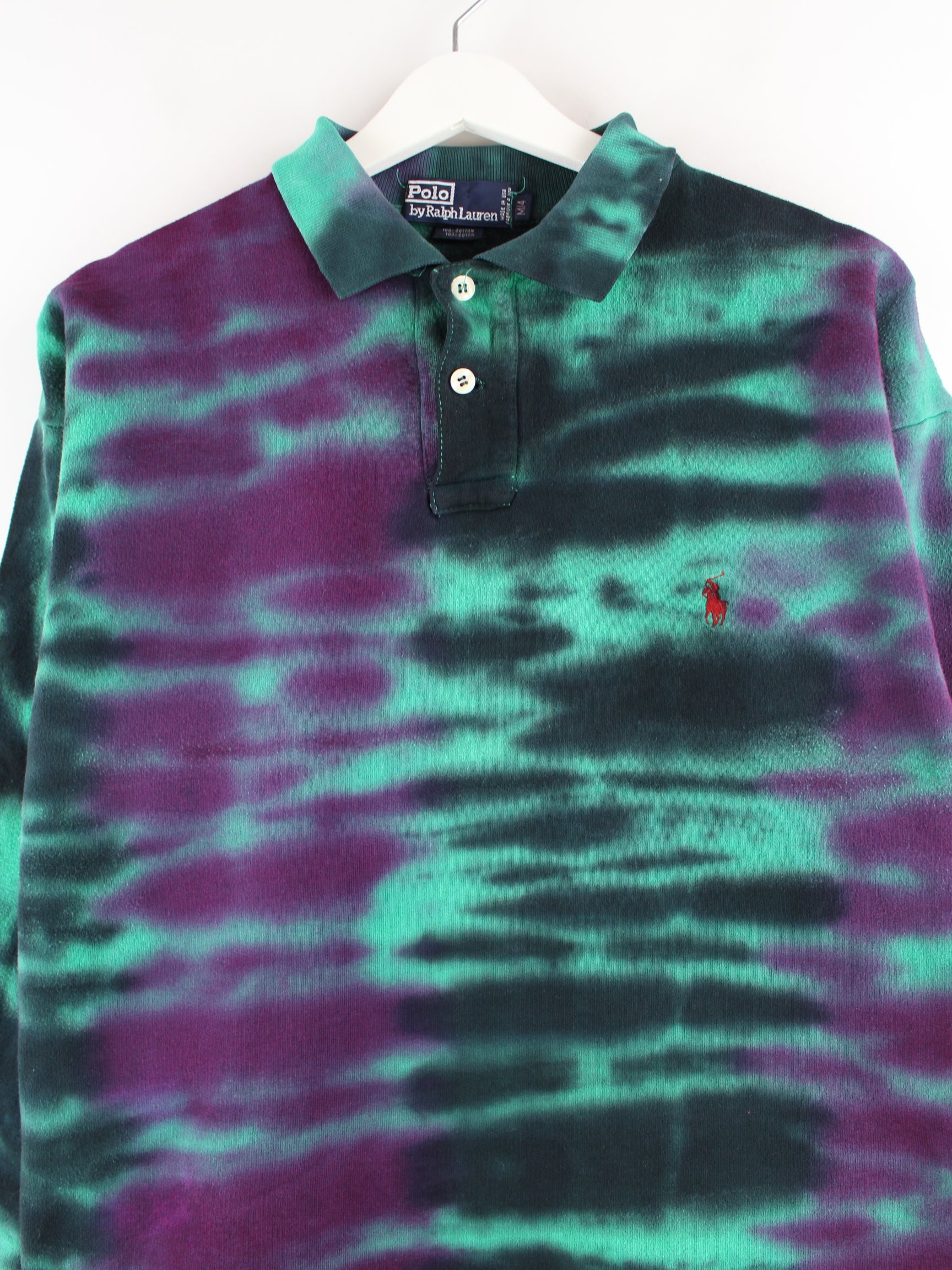 Ralph Lauren 90s Vintage TIe Dye Polo Sweater Grün S