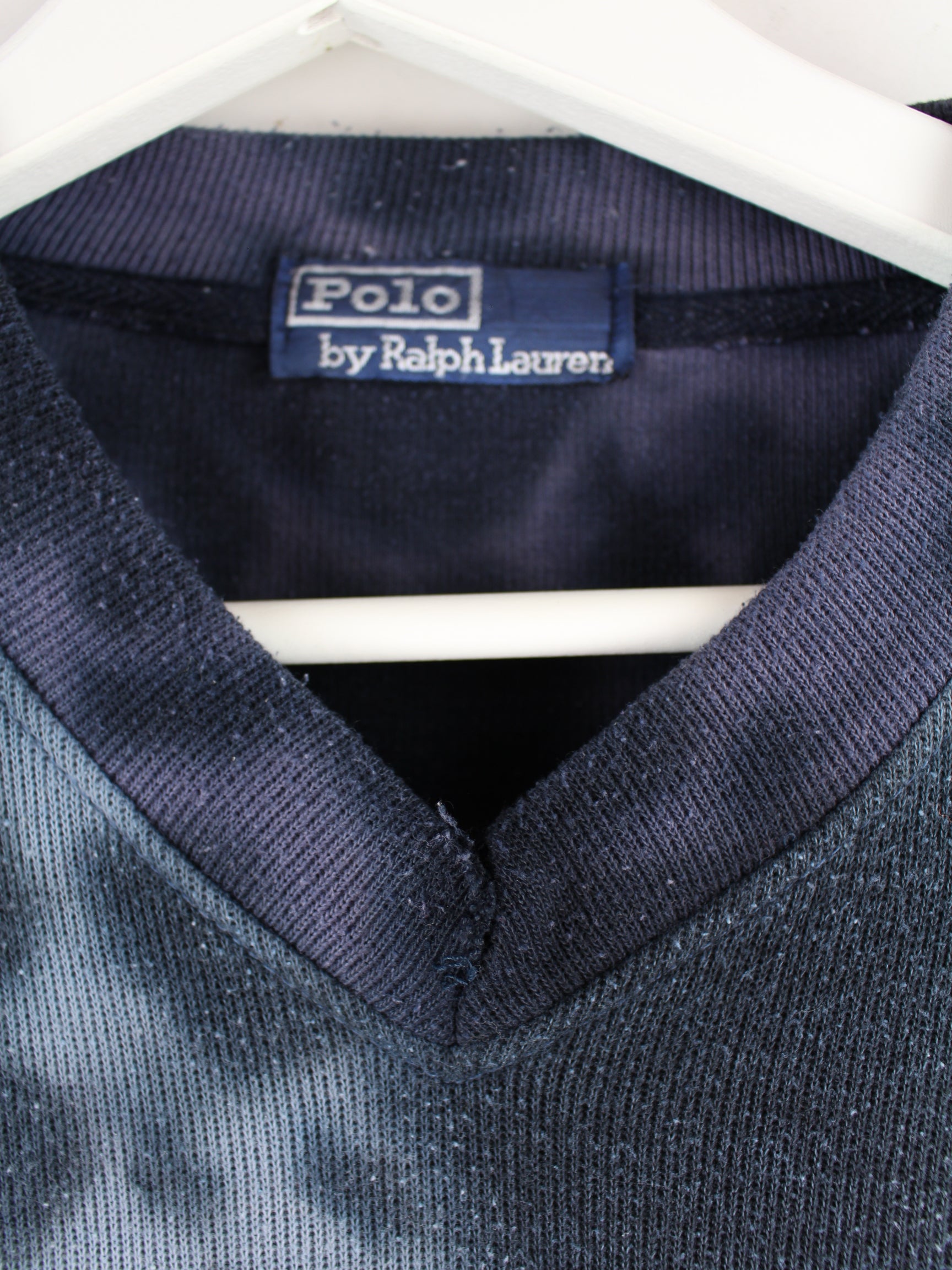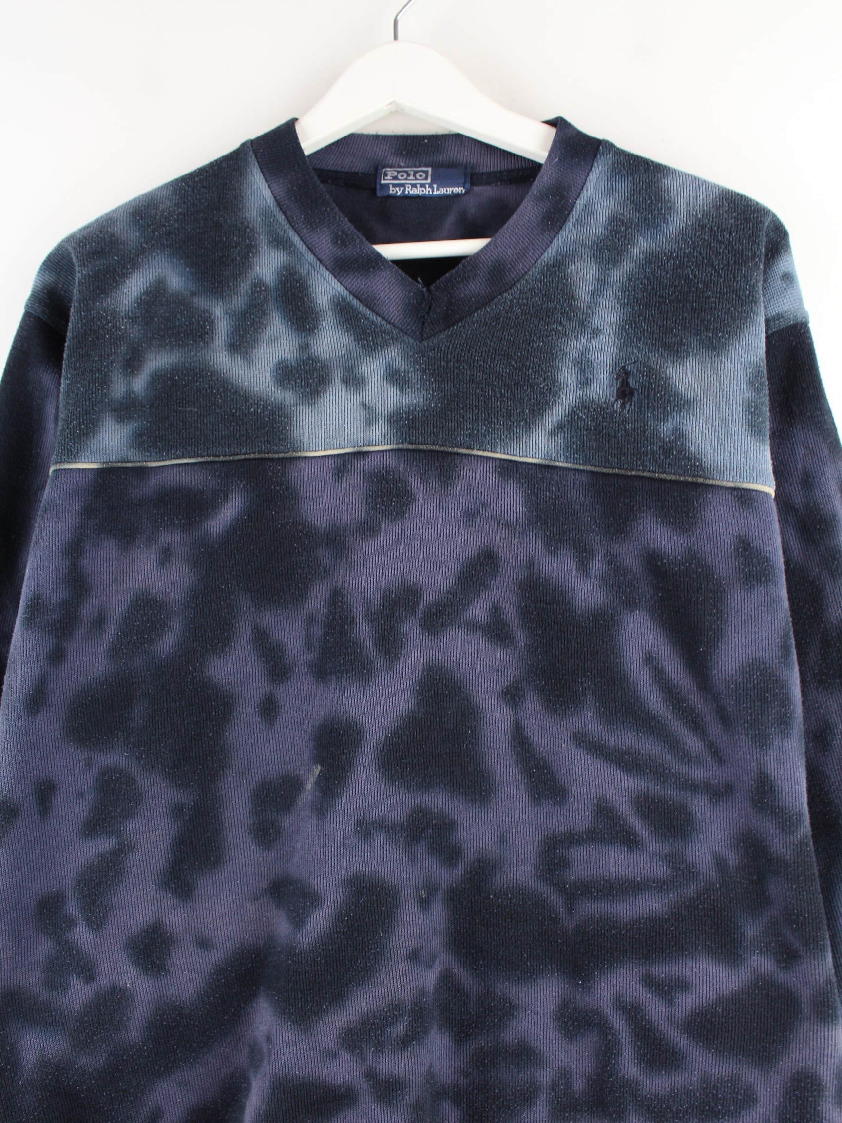 Ralph Lauren 90s Vintage Tie Dye V-Neck Sweater Blau S
