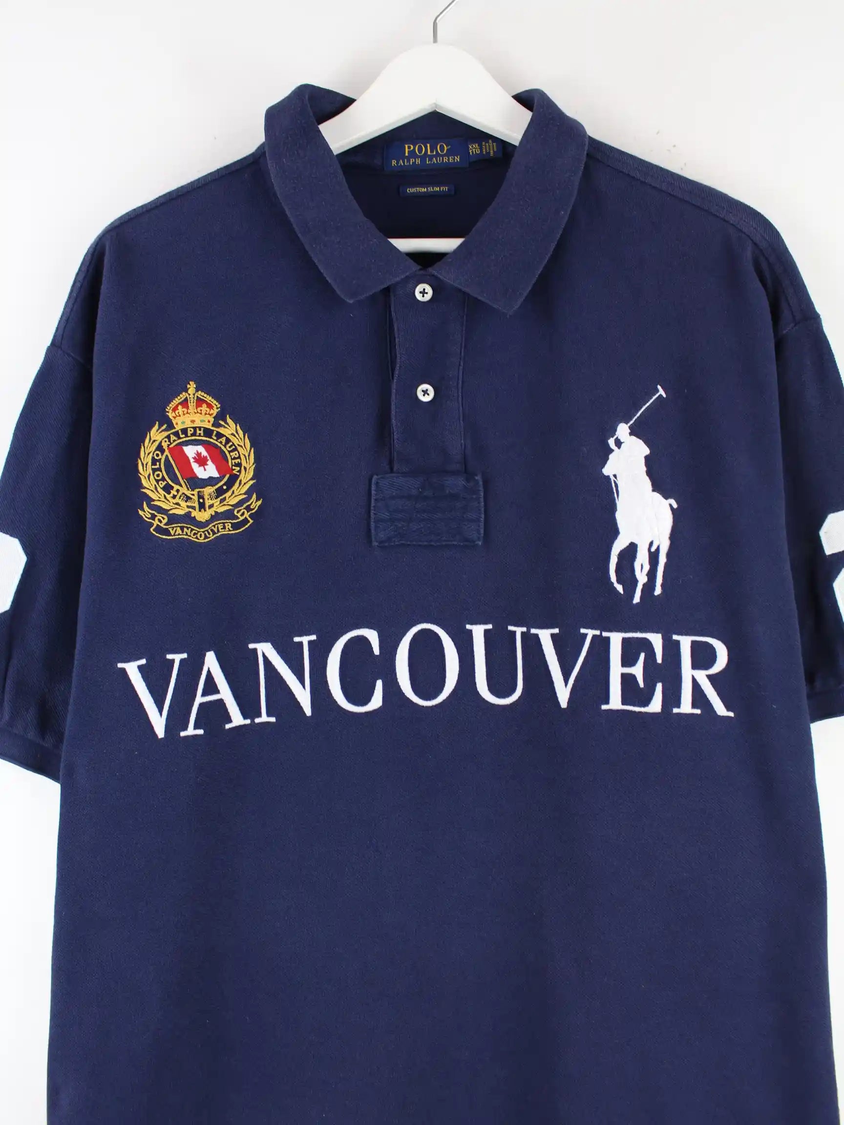 Ralph Lauren 90s Vintage Vancouver Embroidered Polo Blau XXL