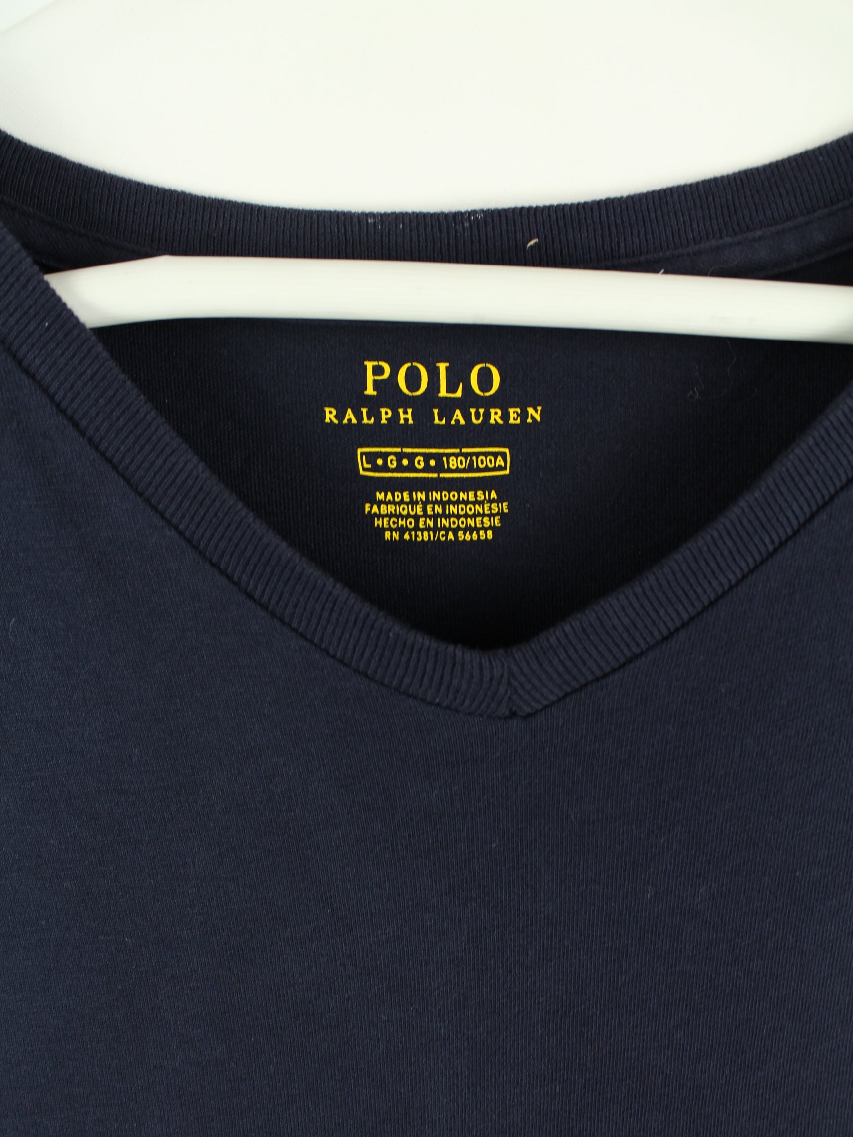 T-Shirt von Ralph Lauren in Größe L mit V-Neck. Es ist aus einer Baumwollmischung hergestellt und in Blau lieferbar.