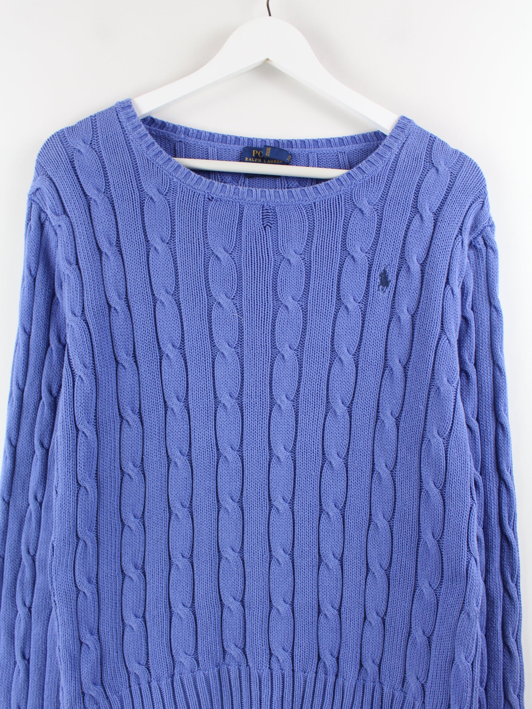 Blauer Pullover aus dem Hause Ralph Lauren aus Anfang der 2000'er in Größe XL. Er ist aus Baumwolle gefertigt und in sehr gutem Zustand bei uns zu bekommen.