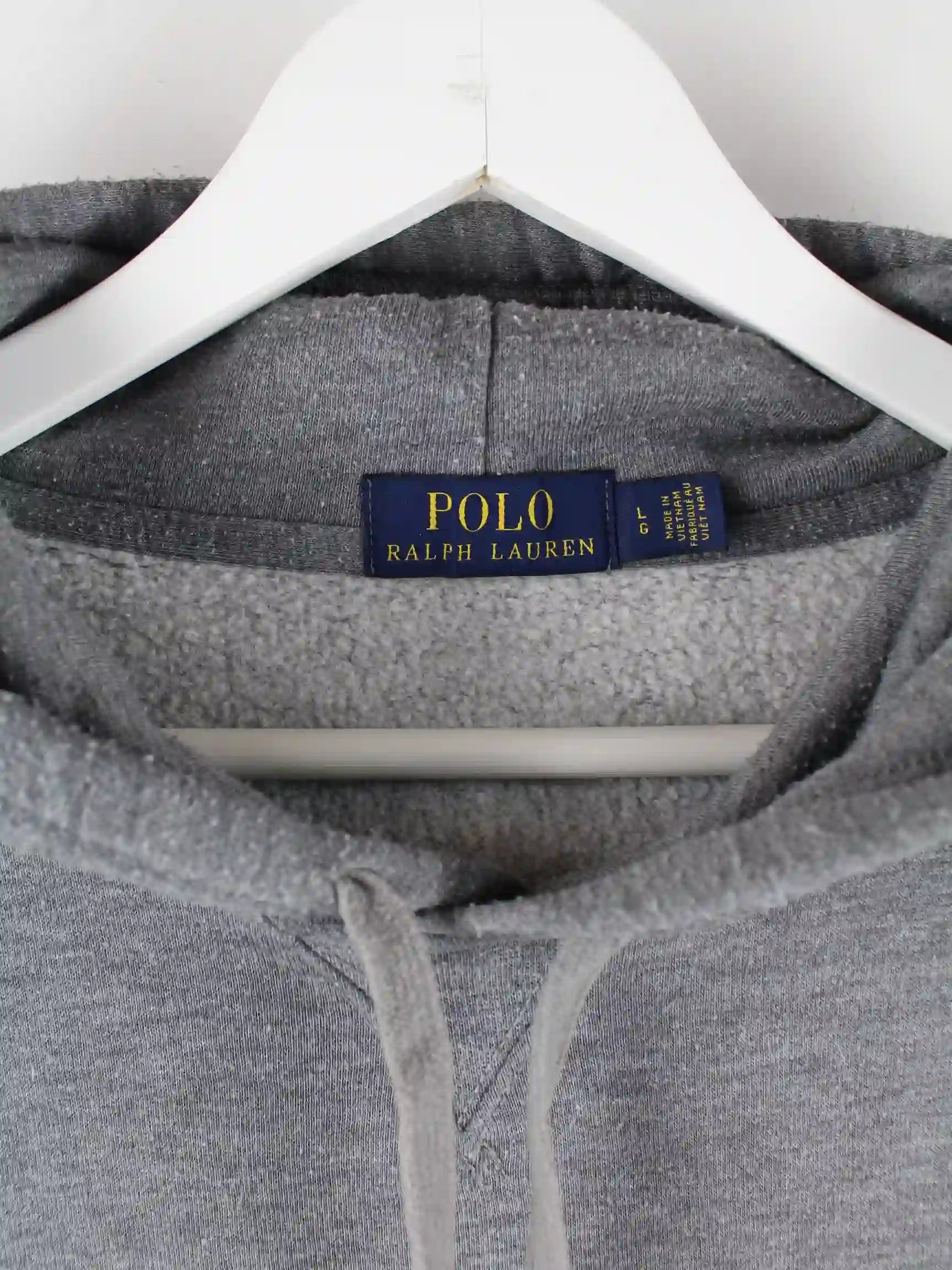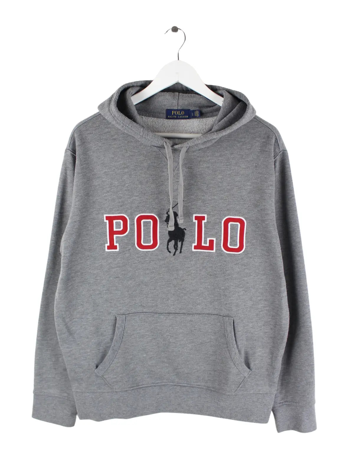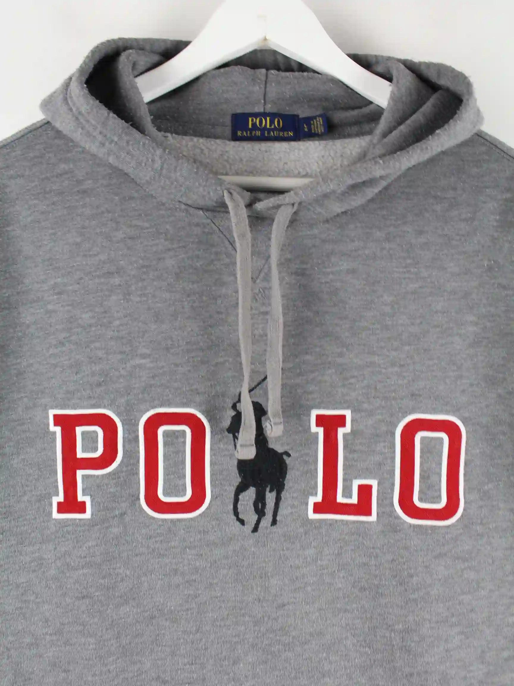 Hoodie aus dem Hause Ralph Lauren mit Stickereien in Größe M. Er ist aus einer Synthetikmischung gemacht und in Grau bei uns vorrätig.