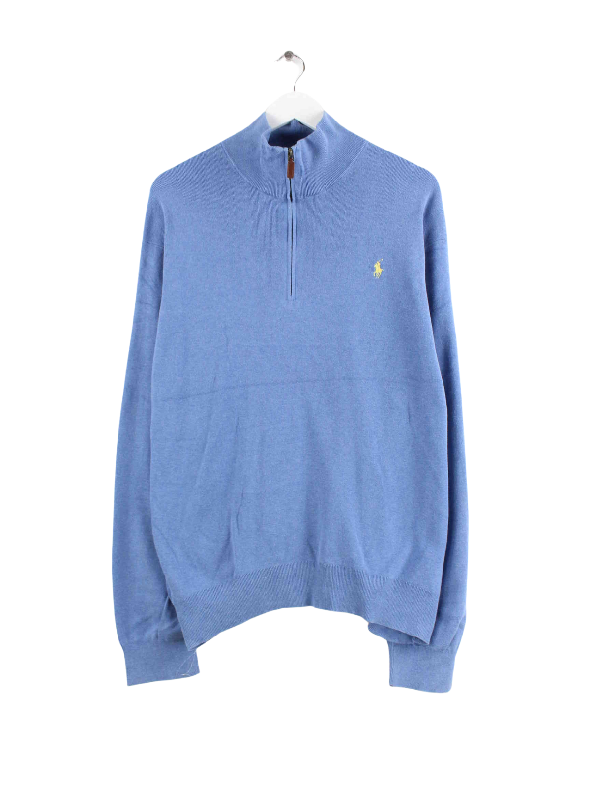 Blauer Pullover mit half Zip von Ralph Lauren in Größe XL. Er ist aus Baumwolle gemacht und in gutem Zustand bei uns zu bekommen.