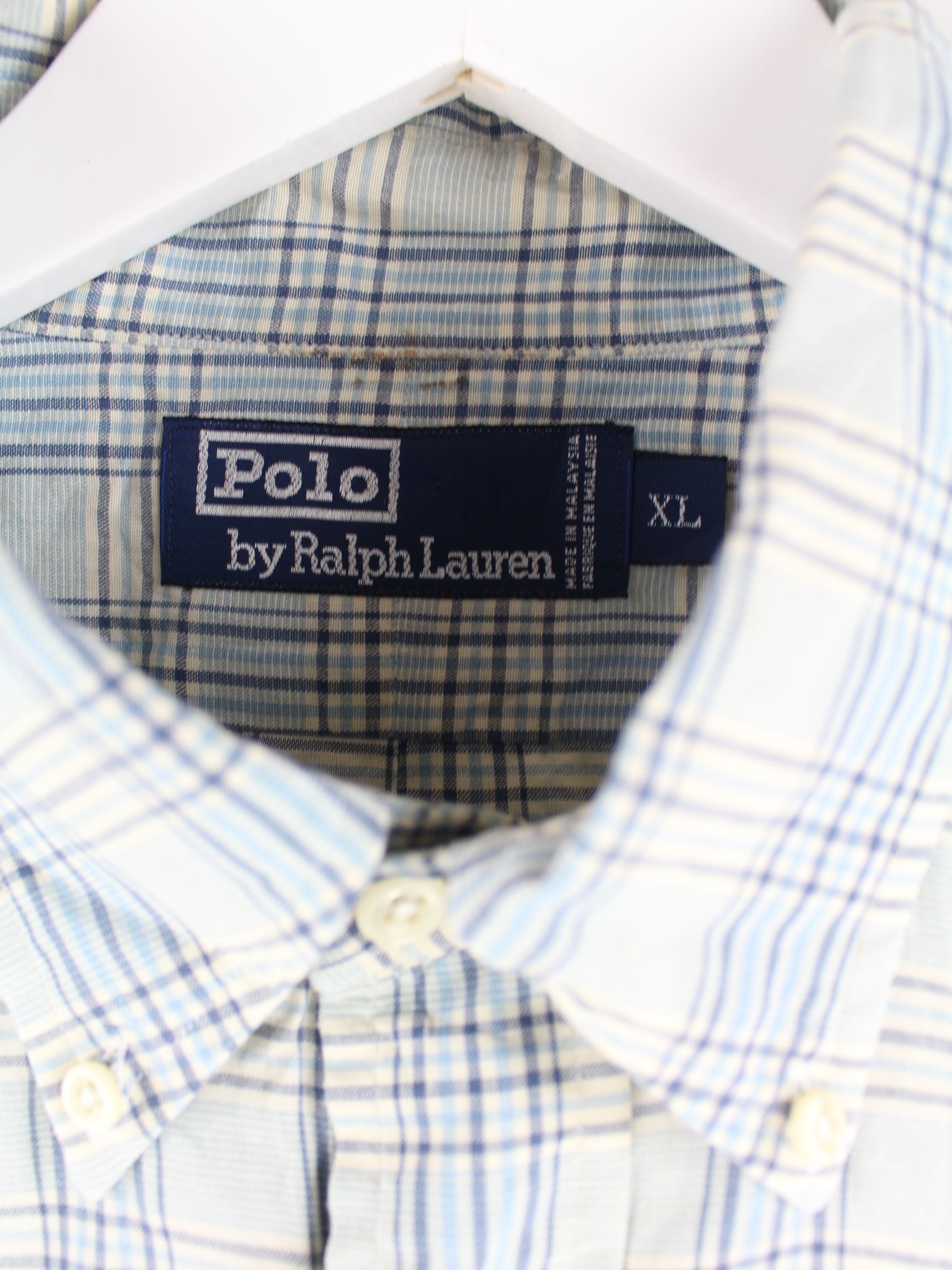 Freizeit Hemd des Labels Ralph Lauren in Größe XL aus Anfang der 2000'er. Es ist aus Baumwolle und in Blau im Bestand.