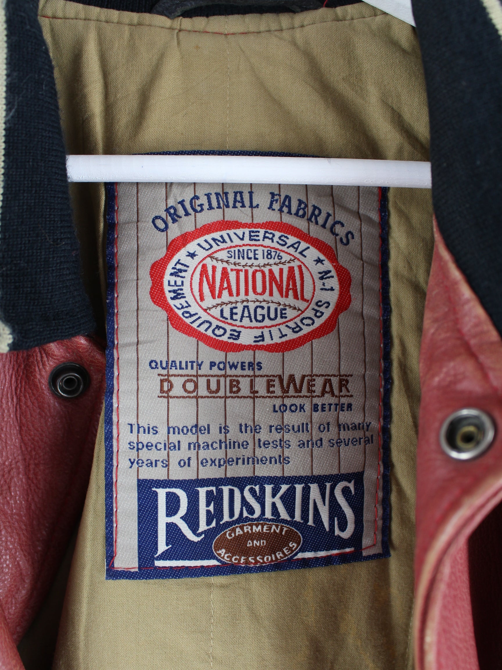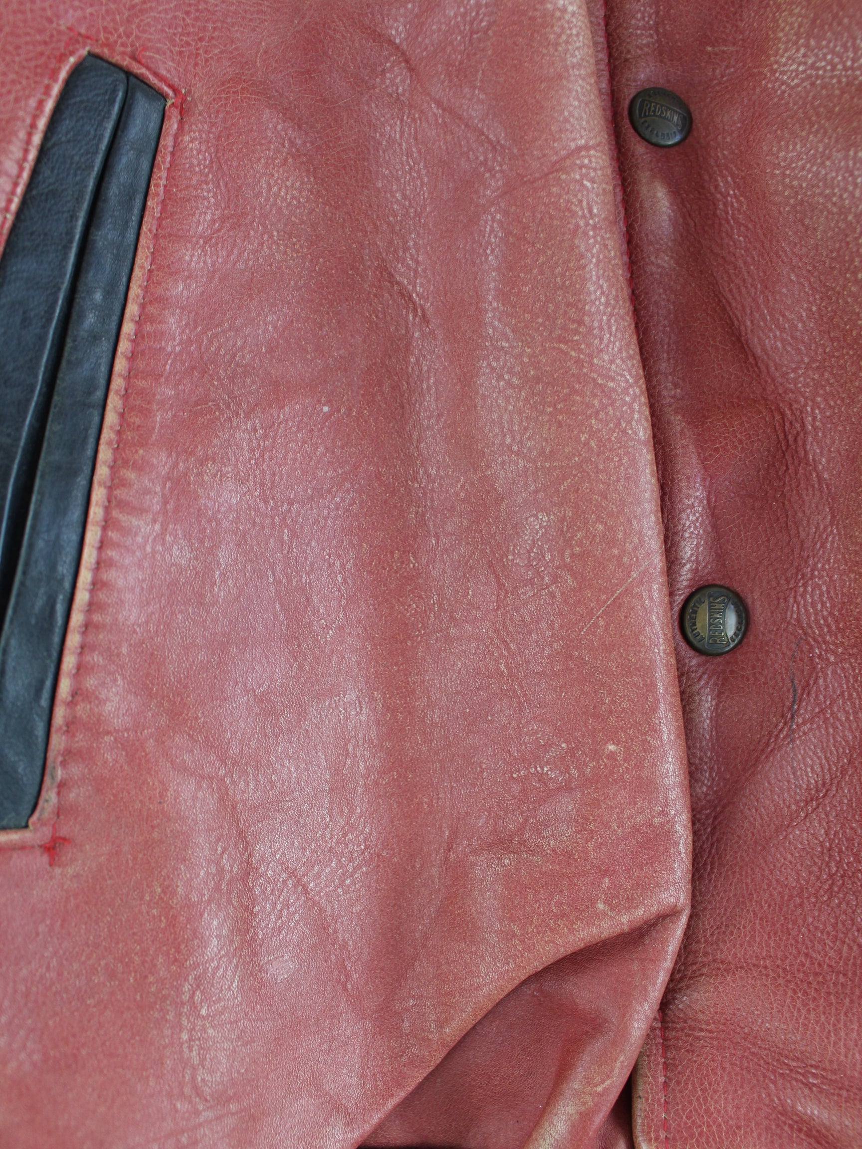 Redskins 90s Vintage Teddy Leder College Jacke Rot L