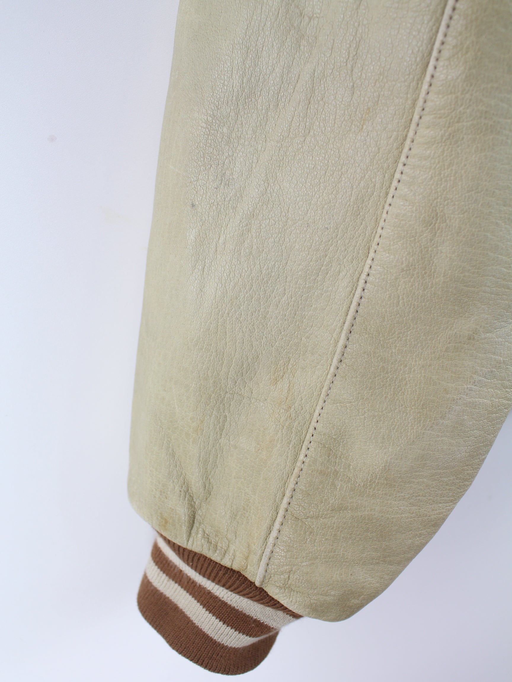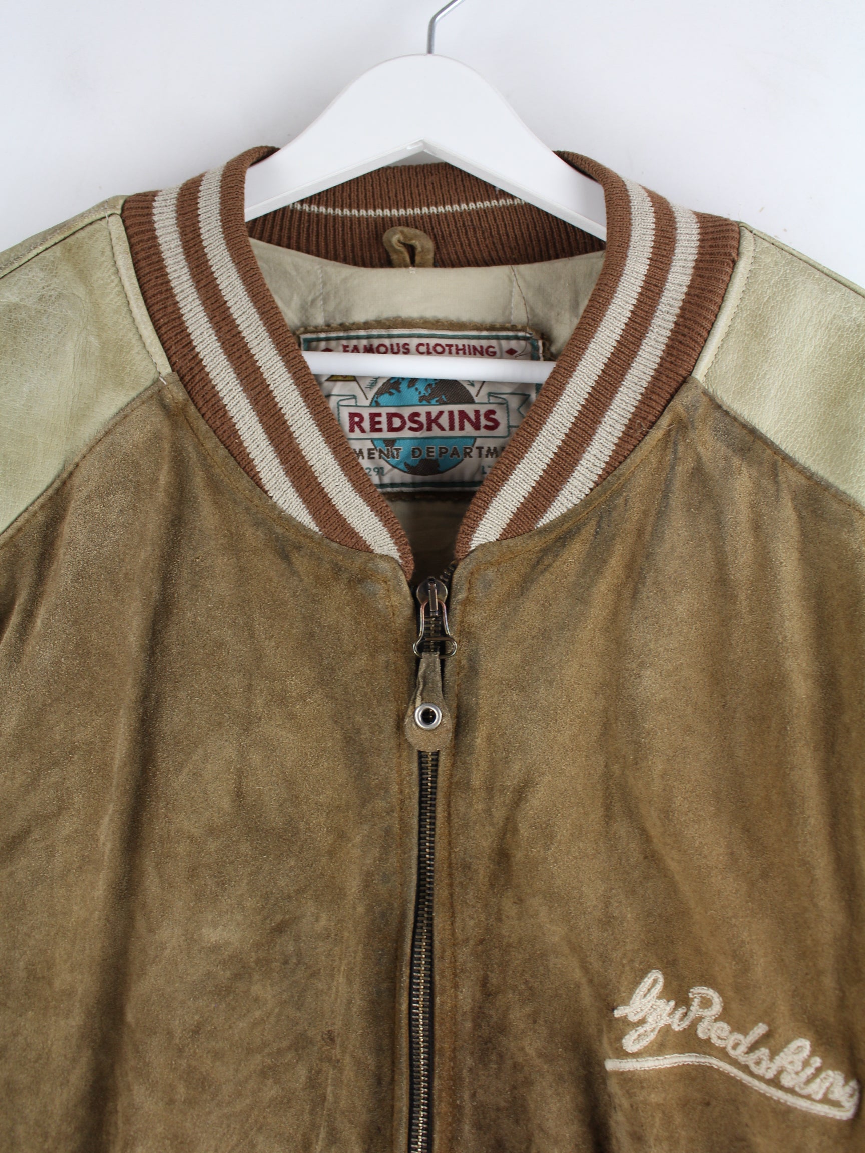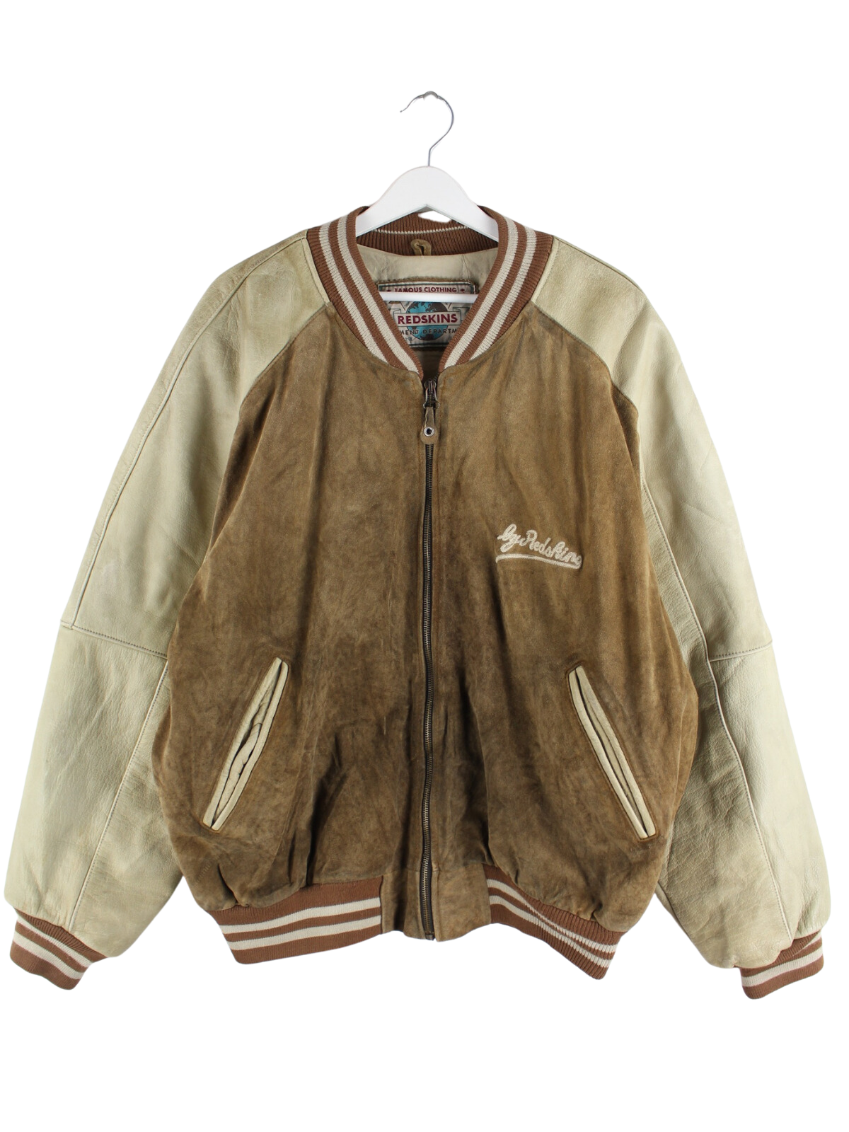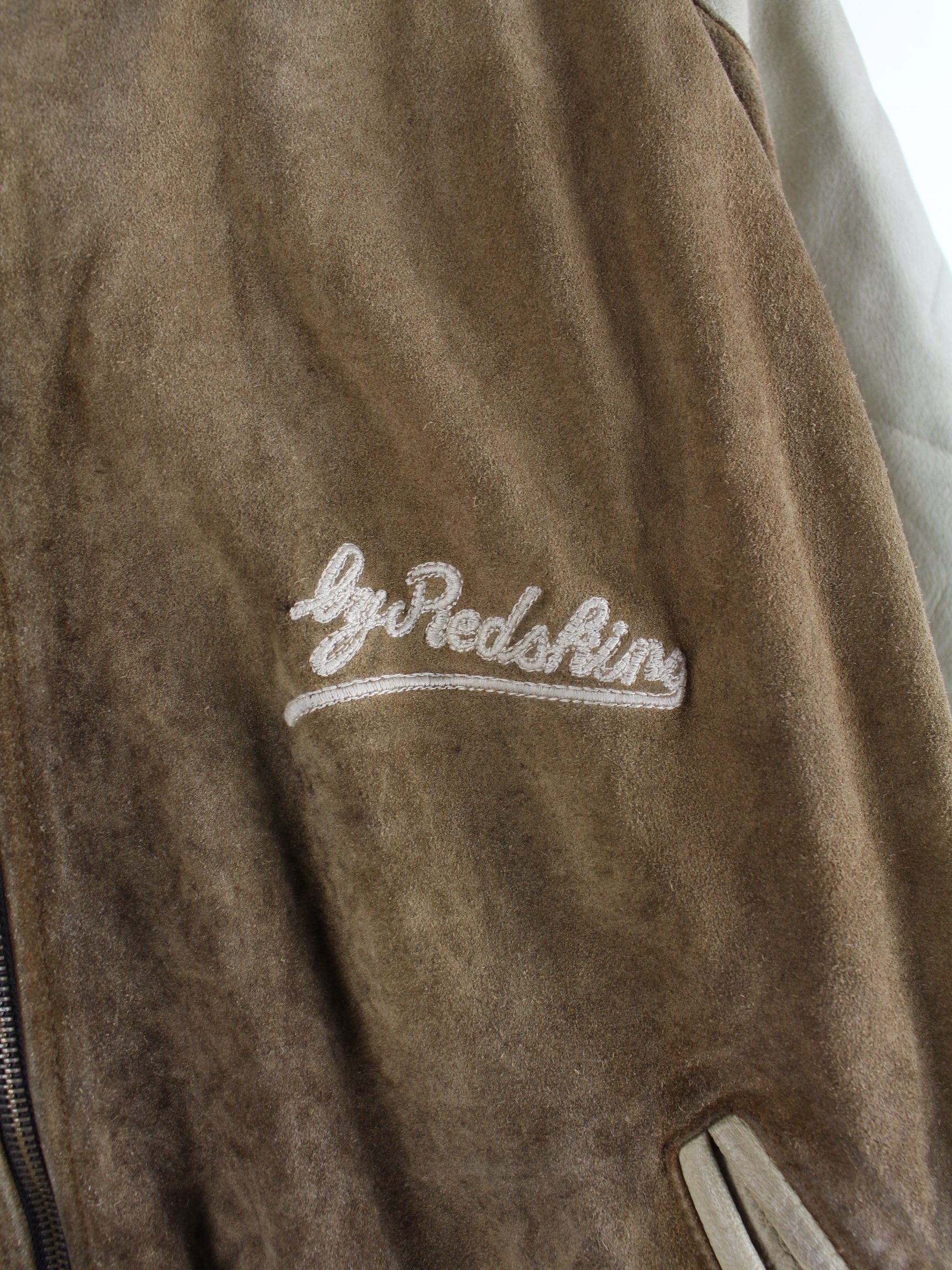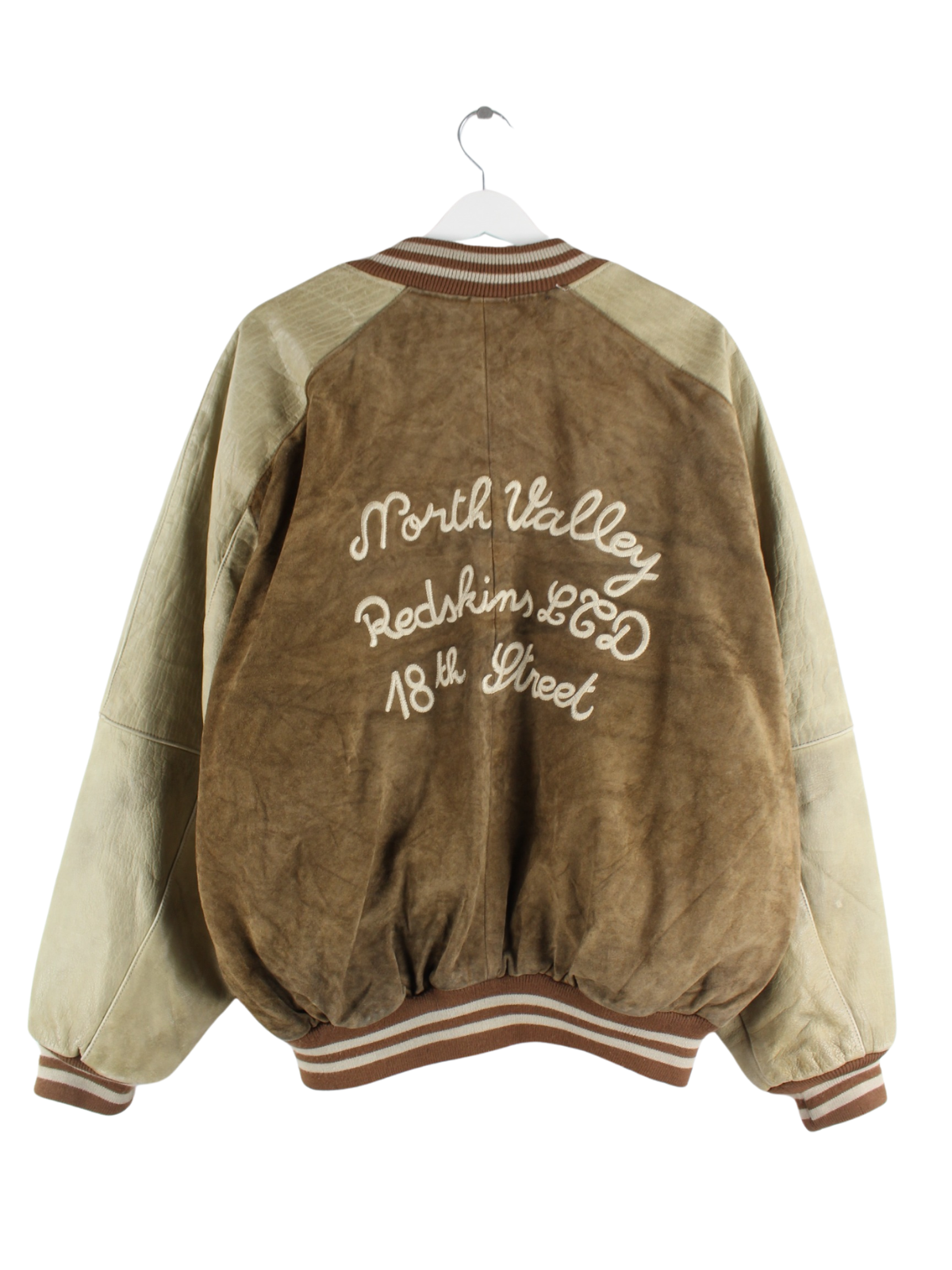 Redskins 90s Vintage Embroidered Leder College Jacke Beige XL