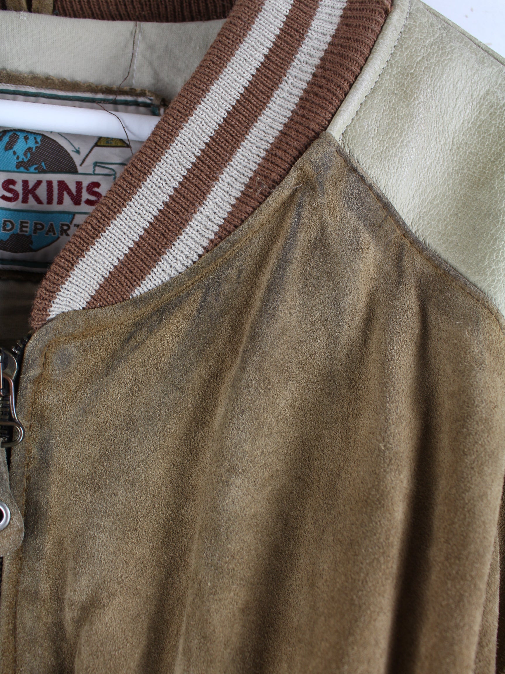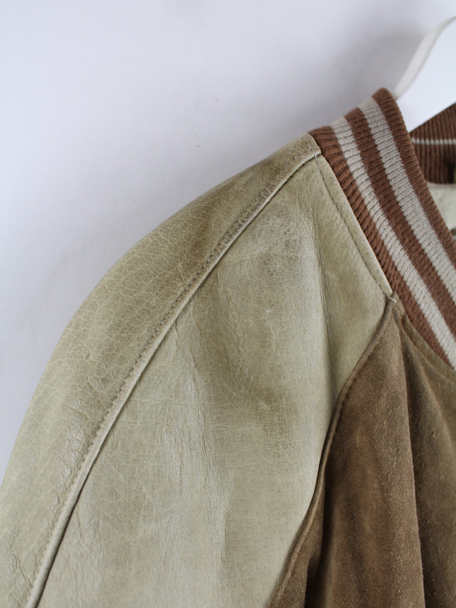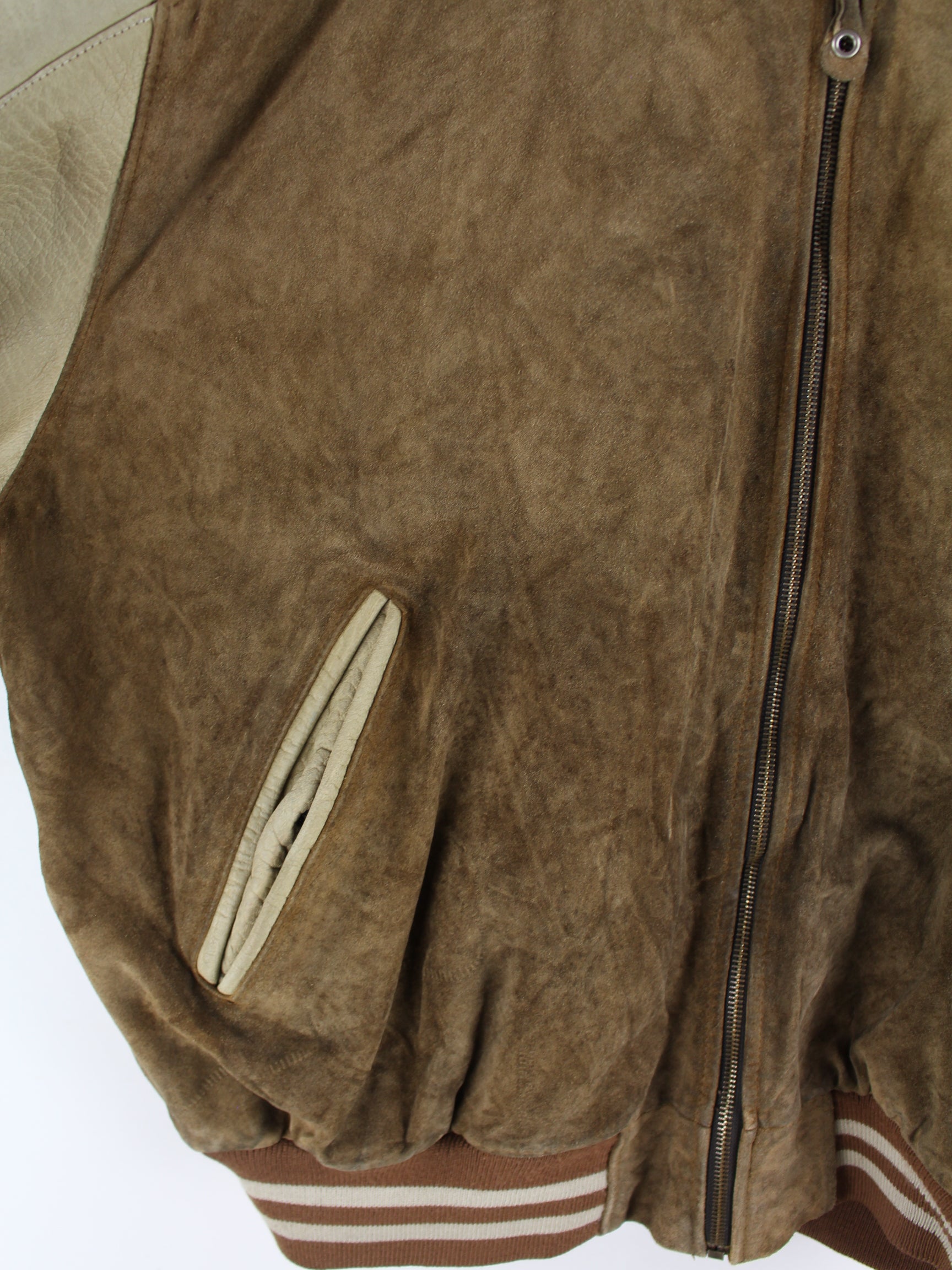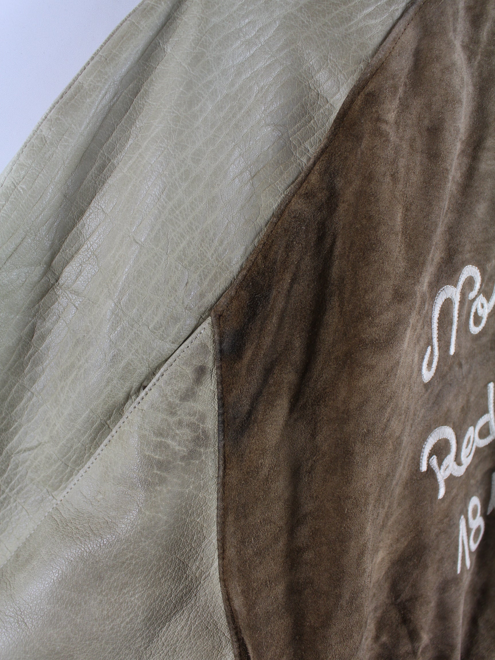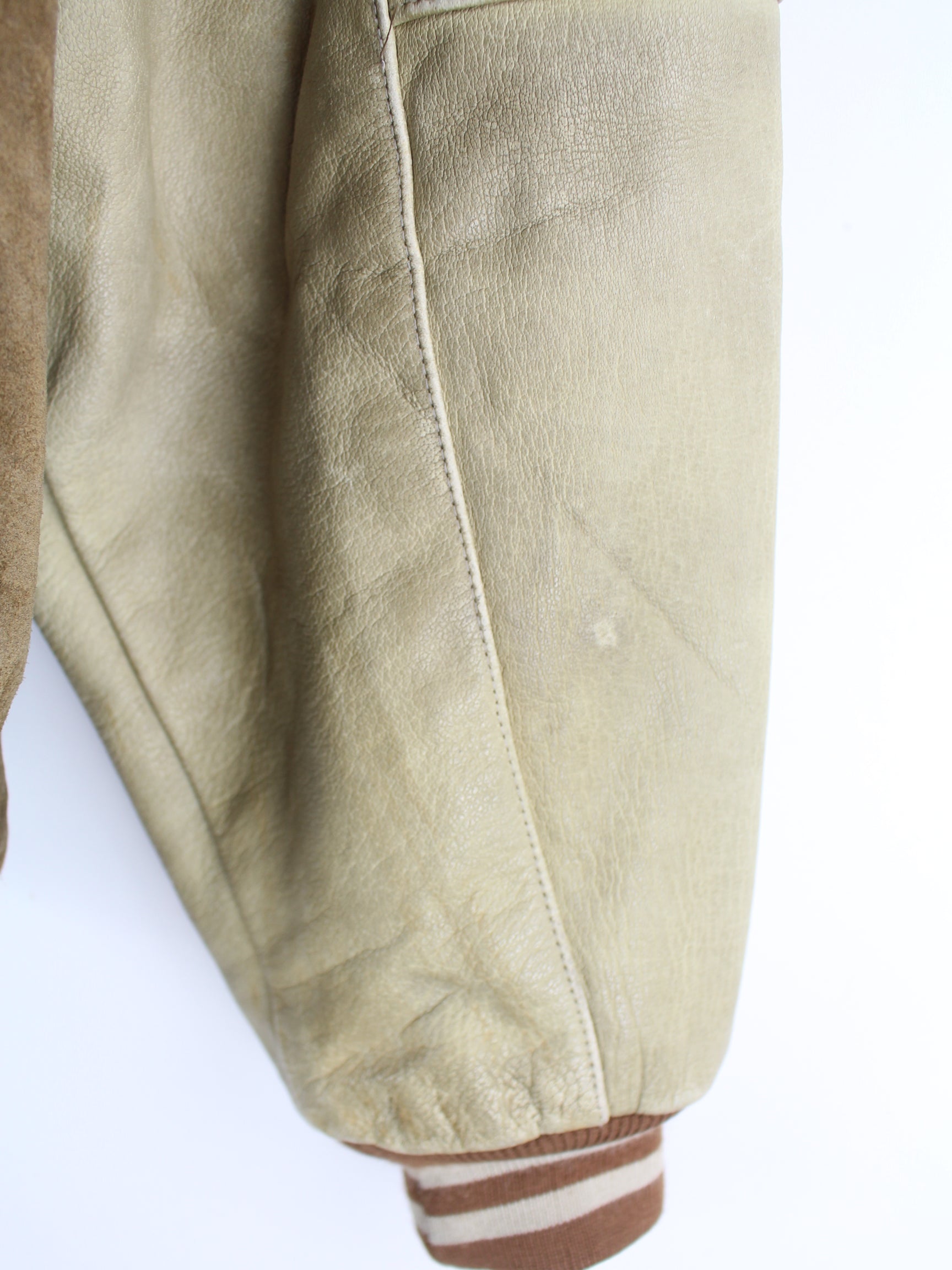 Redskins 90s Vintage Embroidered Leder College Jacke Beige XL