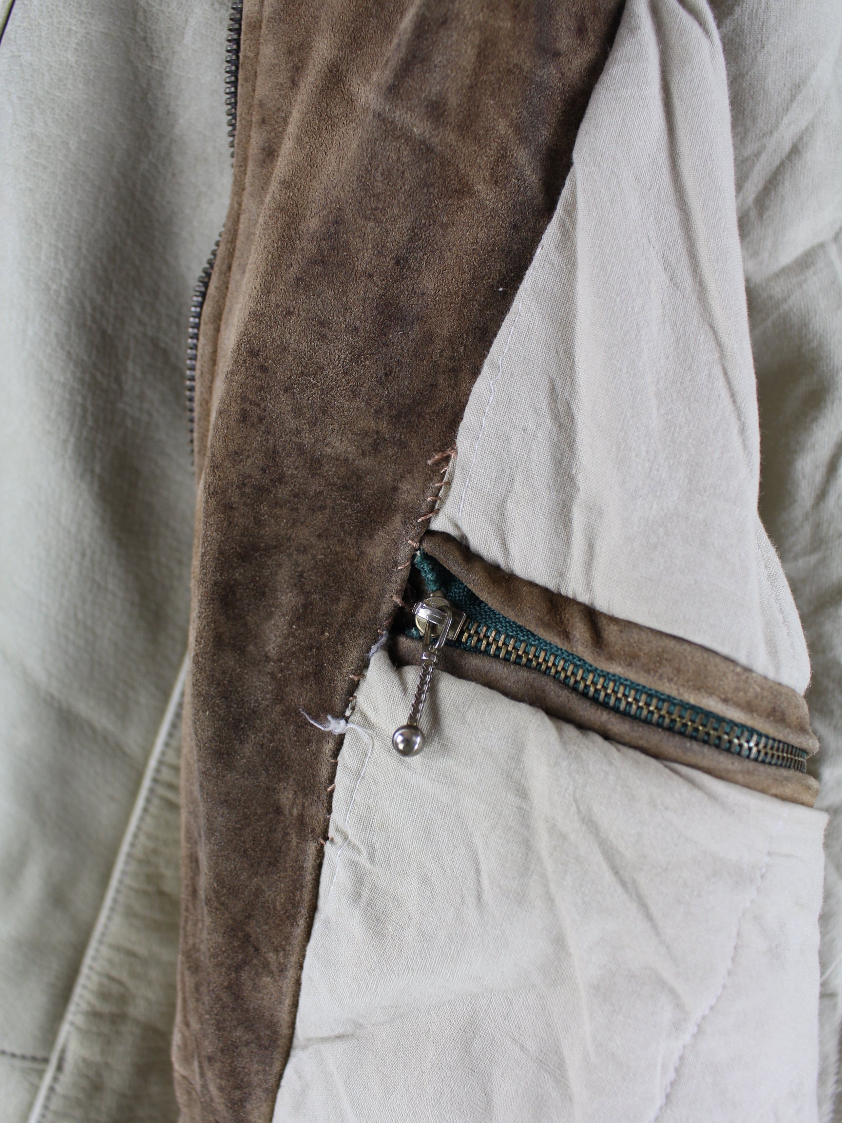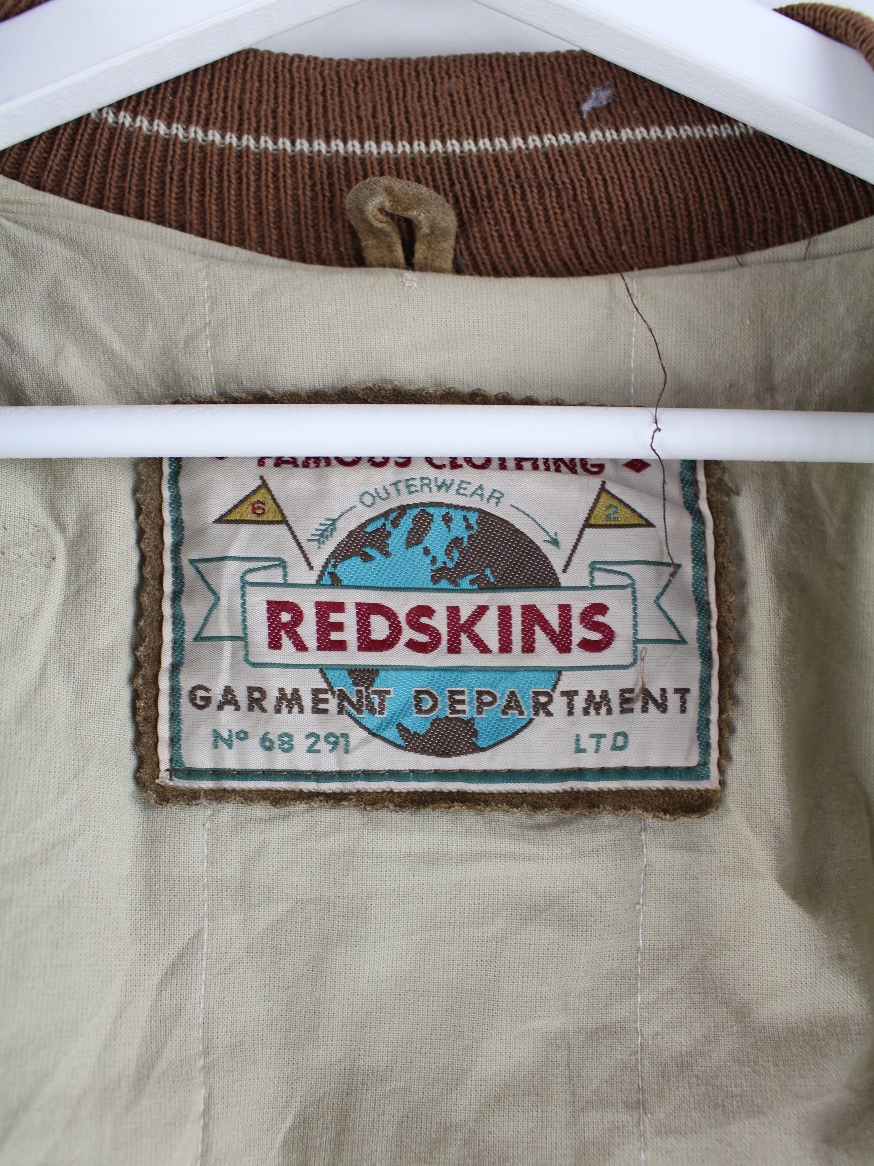 Jacke des Labels Redskins mit Stickereien in Größe XL aus den 90'ern. Sie ist aus Leder und in Beige im Angebot.
