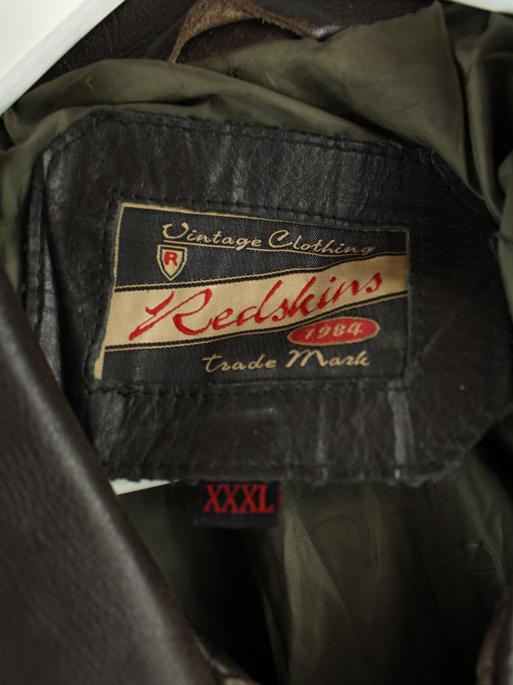 Jacke des Labels Redskins in Größe 3XL aus den 90'ern. Sie ist aus Leder gemacht und in Braun in Stock.