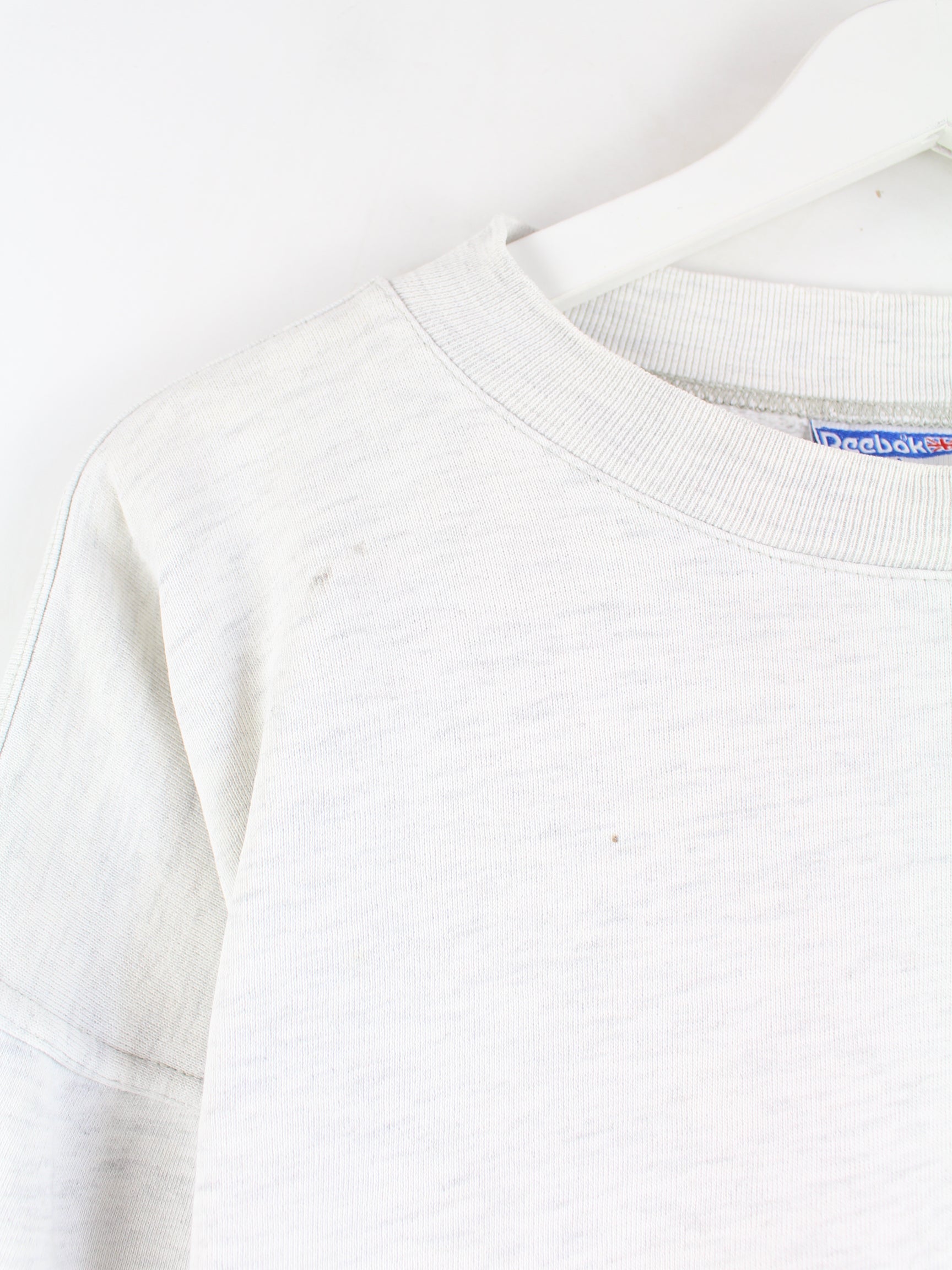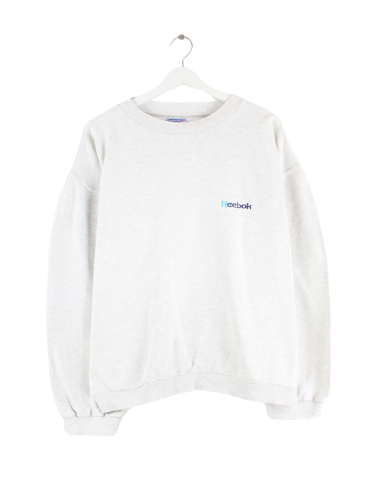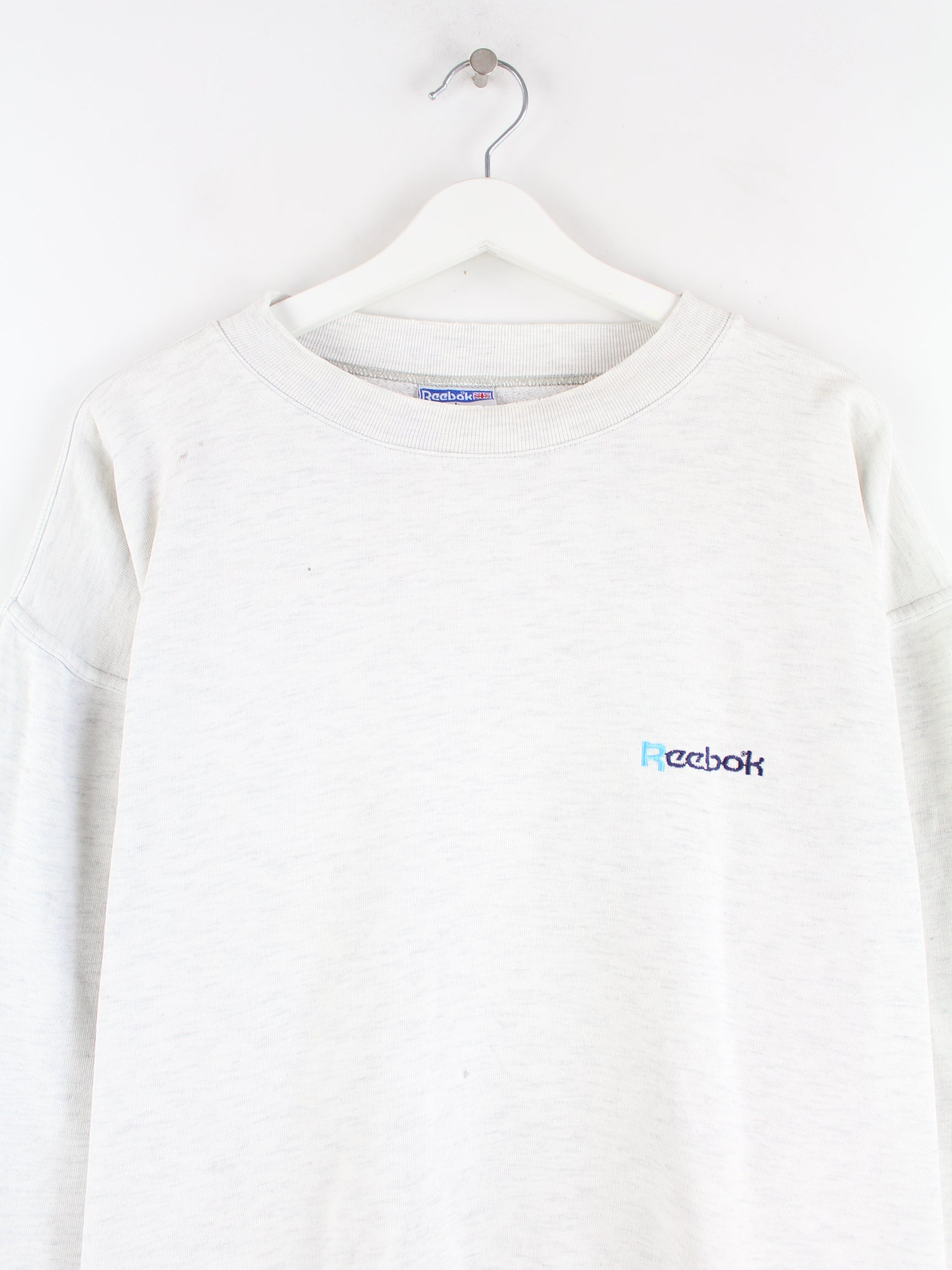 Beigefarbener Sweater von Reebok aus den 90'ern in Größe L. Er ist aus einer Baumwollmischung produziert. Den Zustand würden wir als 'In Ordnung' bezeichnen (vergl. Bilder).
