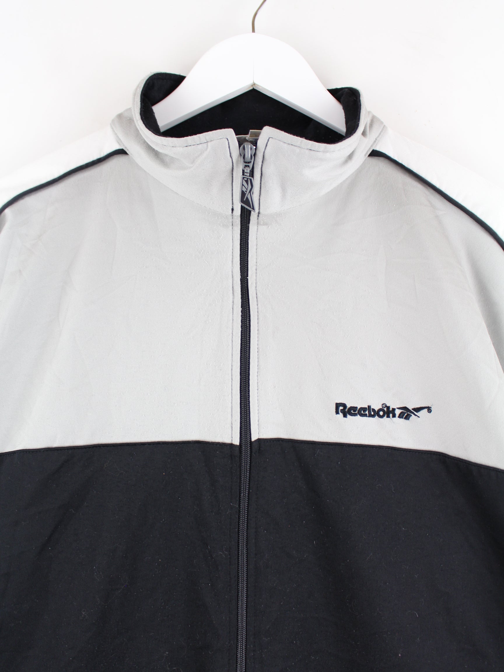 Trainingsjacke von Reebok mit Stick in Größe XXL aus den 90'ern. Sie ist aus Synthetik gefertigt und in Blau auf Lager.