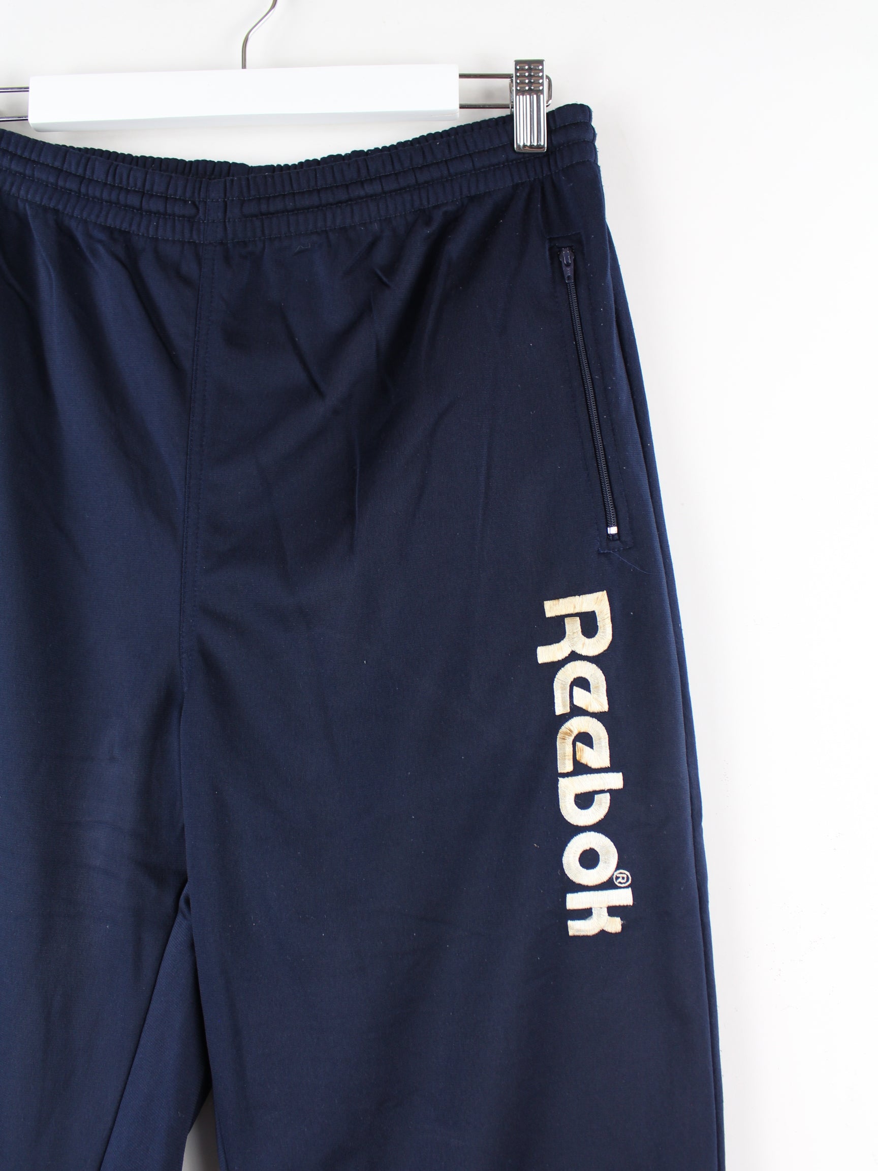 Track Pants vom Label Reebok in Größe L aus den 90'ern. Sie sind aus Synthetik hergestellt und in Blau auf Lager.