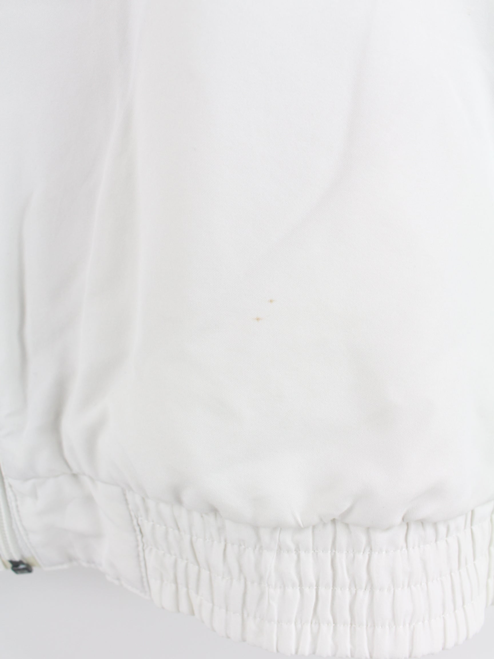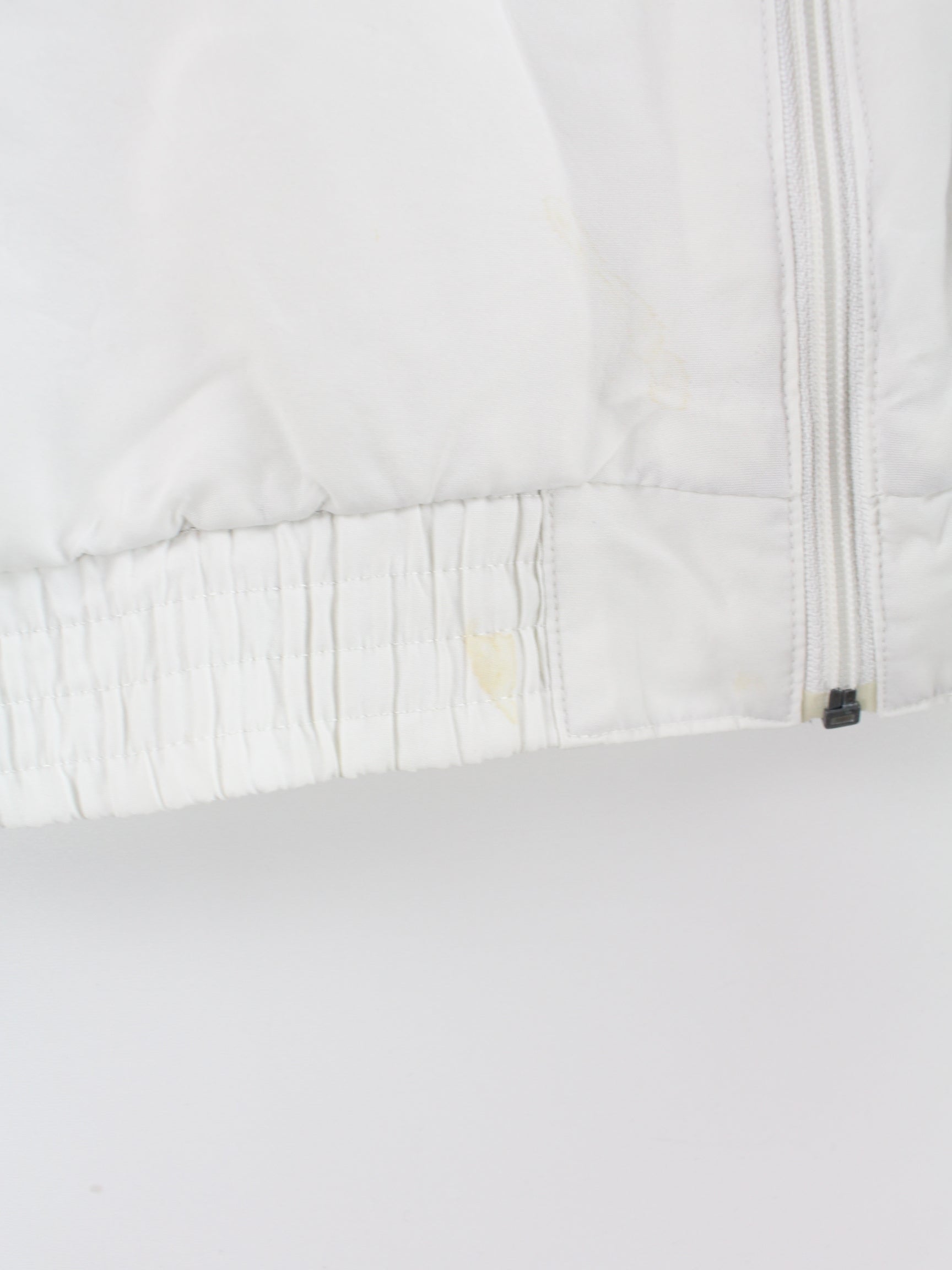 Trainingsjacke vom Label Reebok in Größe L aus Anfang der 2000'er. Sie ist aus Synthetik produziert und in Weiß bei uns vorrätig.