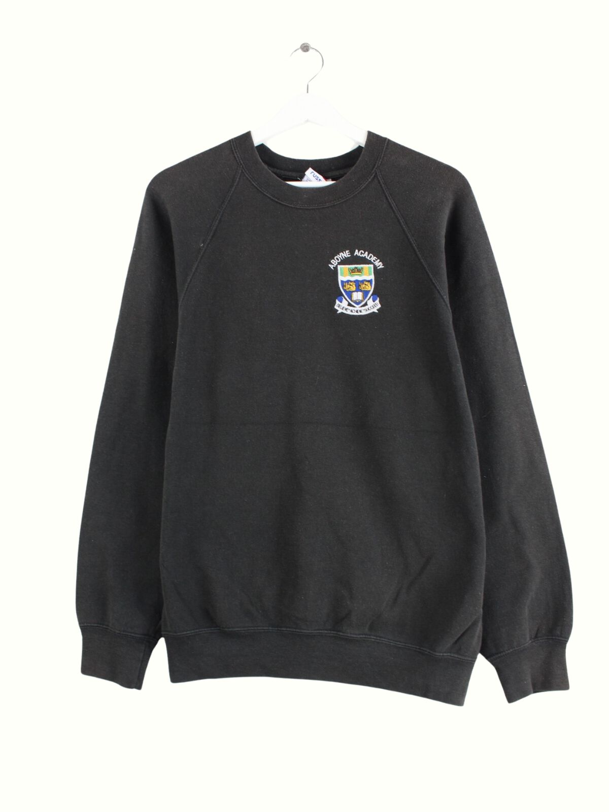Sweater des Labels Russell Athletic mit Stick in Größe M aus den 90'ern. Er ist aus einer Baumwollmischung angefertigt und in Schwarz in Stock.