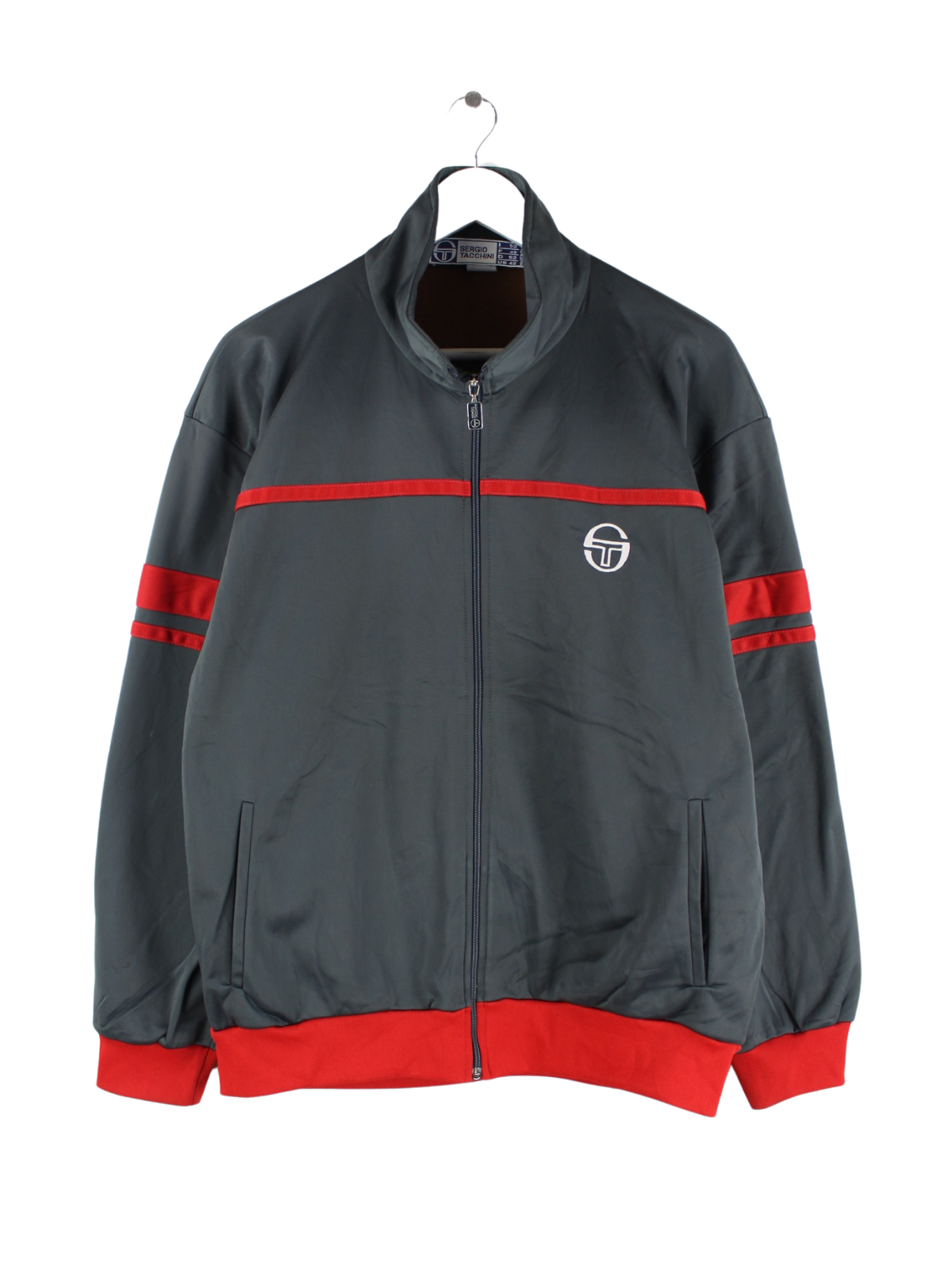 Graue Trainingsjacke vom Brand Sergio Tacchini aus den 80'ern in Größe L. Sie ist aus Synthetik gefertigt und in gutem Zustand in Stock.