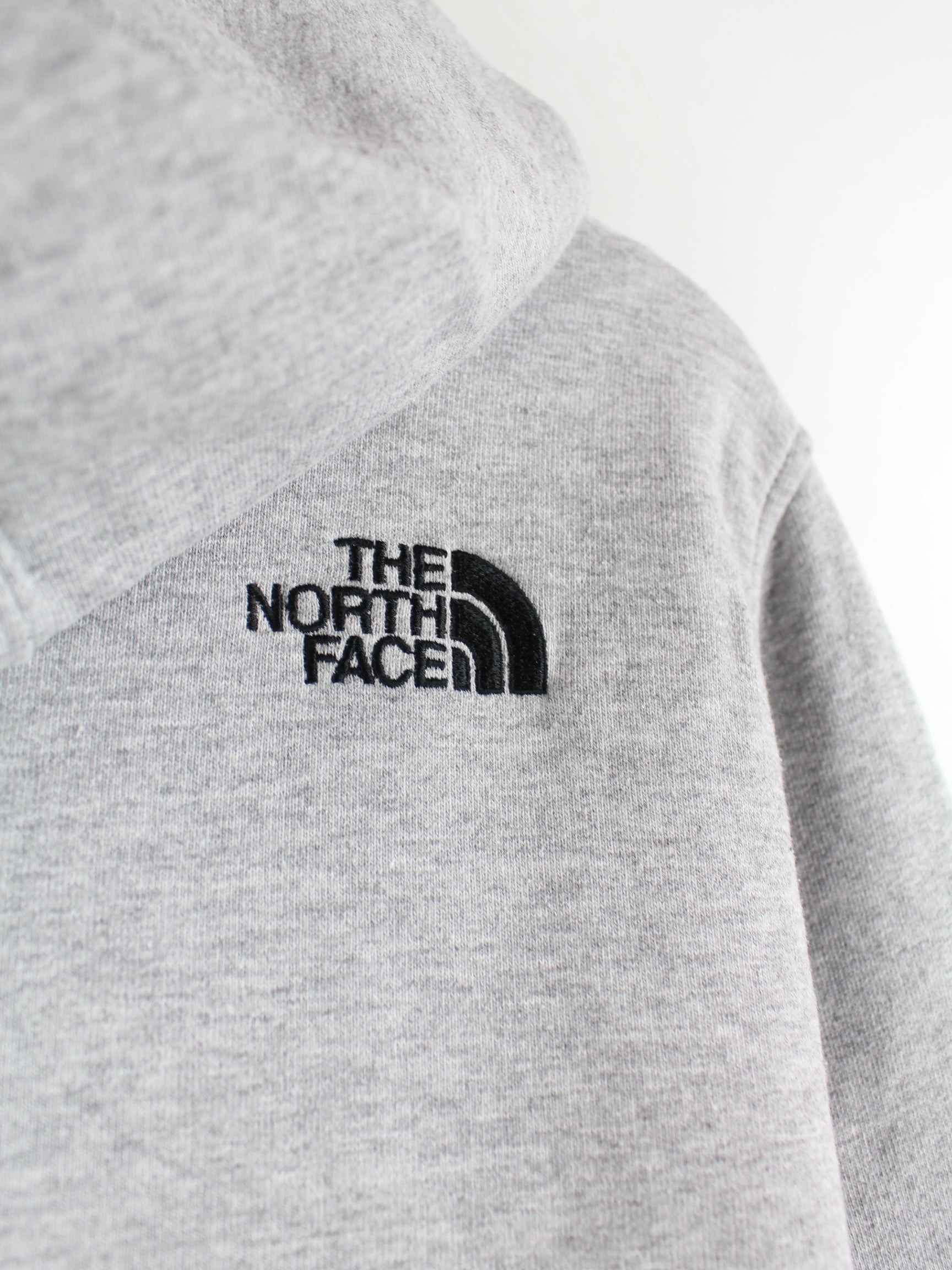 Grauer Hoodie mit gestickten Motiven der Brand The North Face in Größe M. Er ist aus einer Baumwollmischung und in sehr gutem Zustand vorrätig.