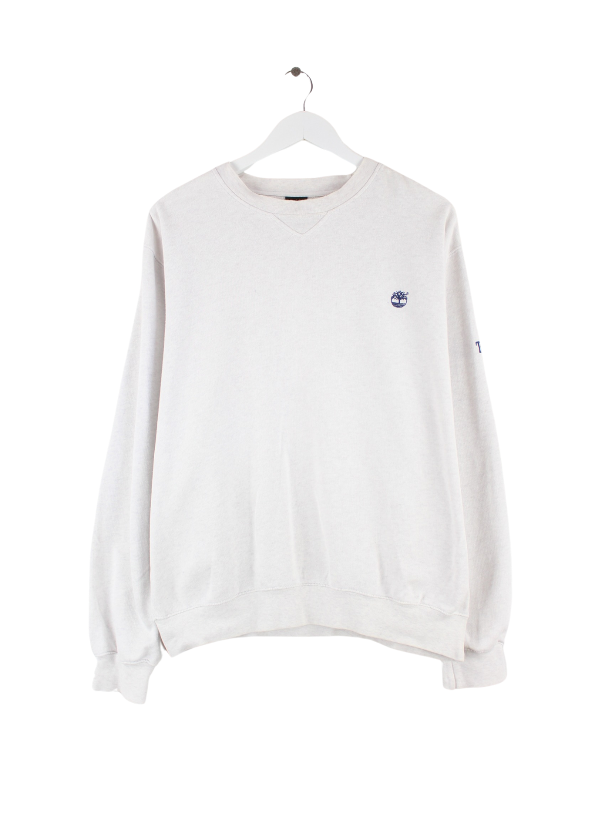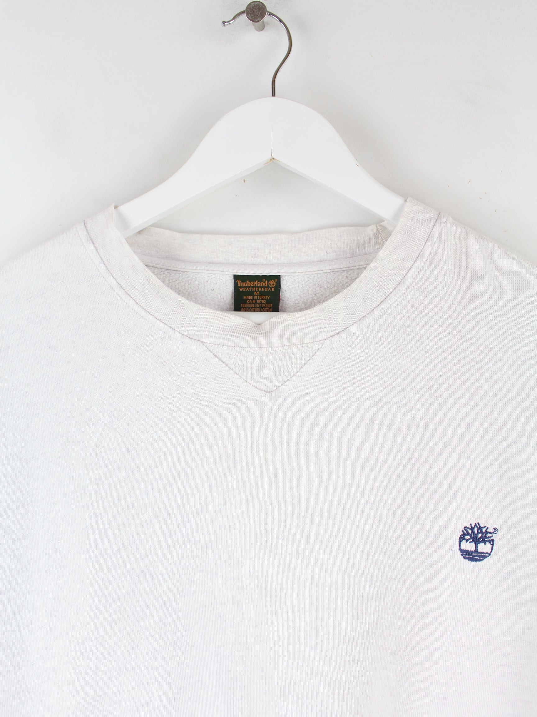 Sweater des Labels Timberland in Größe M aus den 90'ern. Er ist aus einer Baumwollmischung angefertigt und in Weiß in Stock.