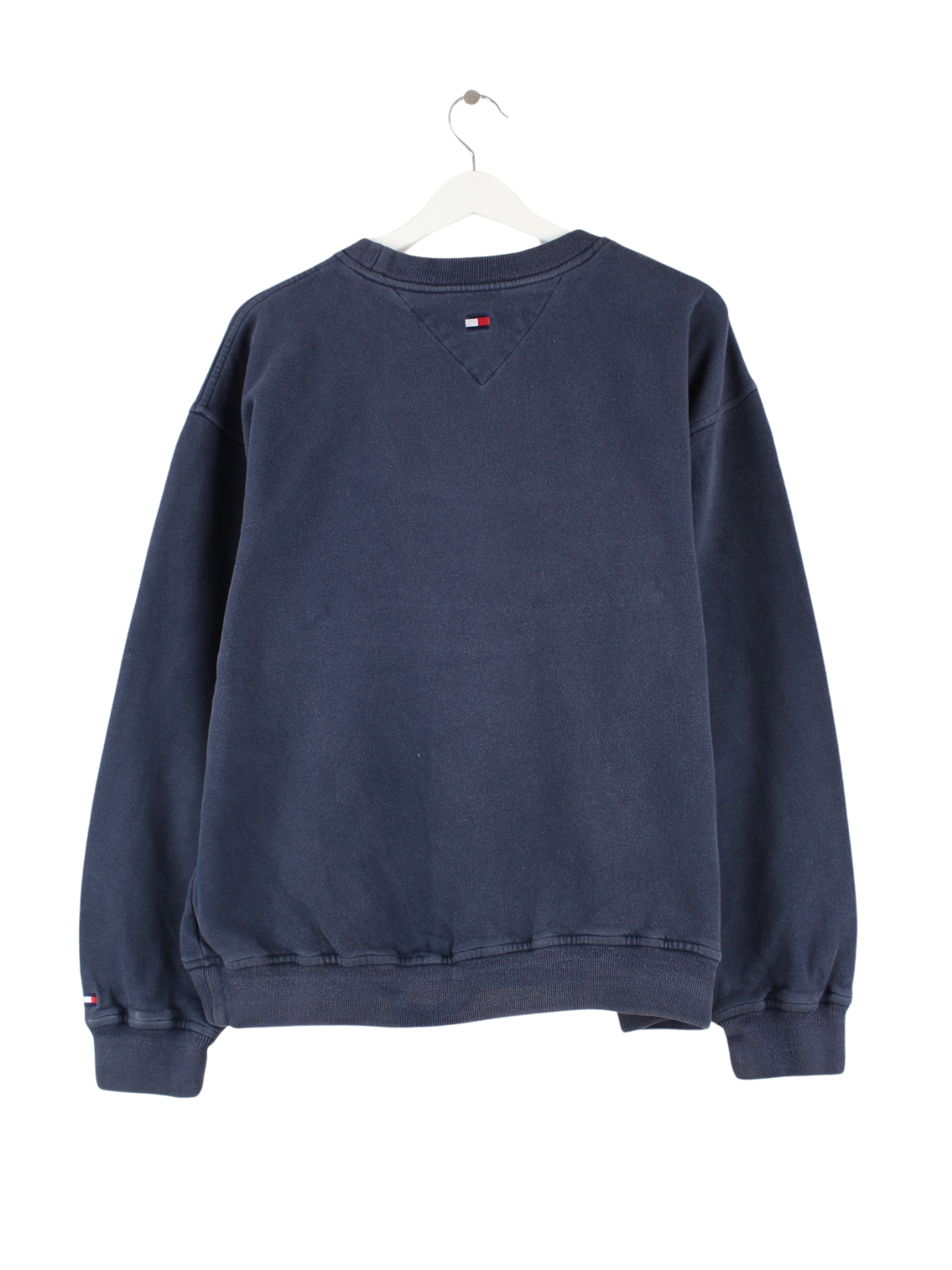 Sweater vom Label Tommy Hilfiger in Größe L aus den 90'ern. Er ist aus einer Baumwollmischung und in Blau vorrätig.
