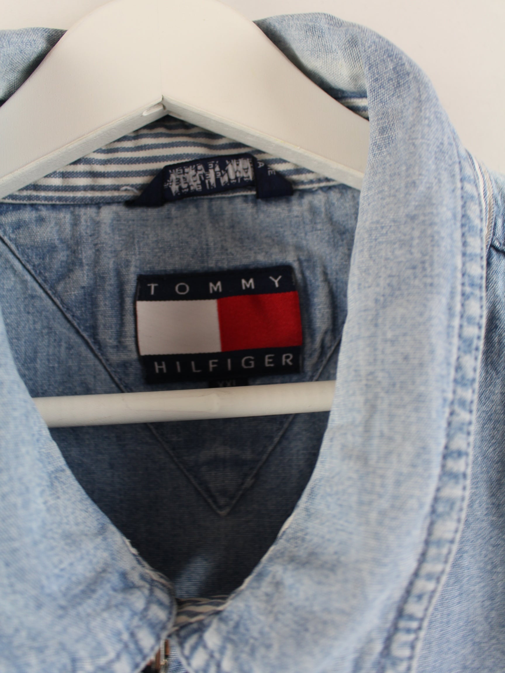 Blaue Leichte Jacke der Marke Tommy Hilfiger aus den 90'ern in Größe XL. Sie ist aus einer Baumwollmischung gefertigt und in gutem Zustand in Stock.