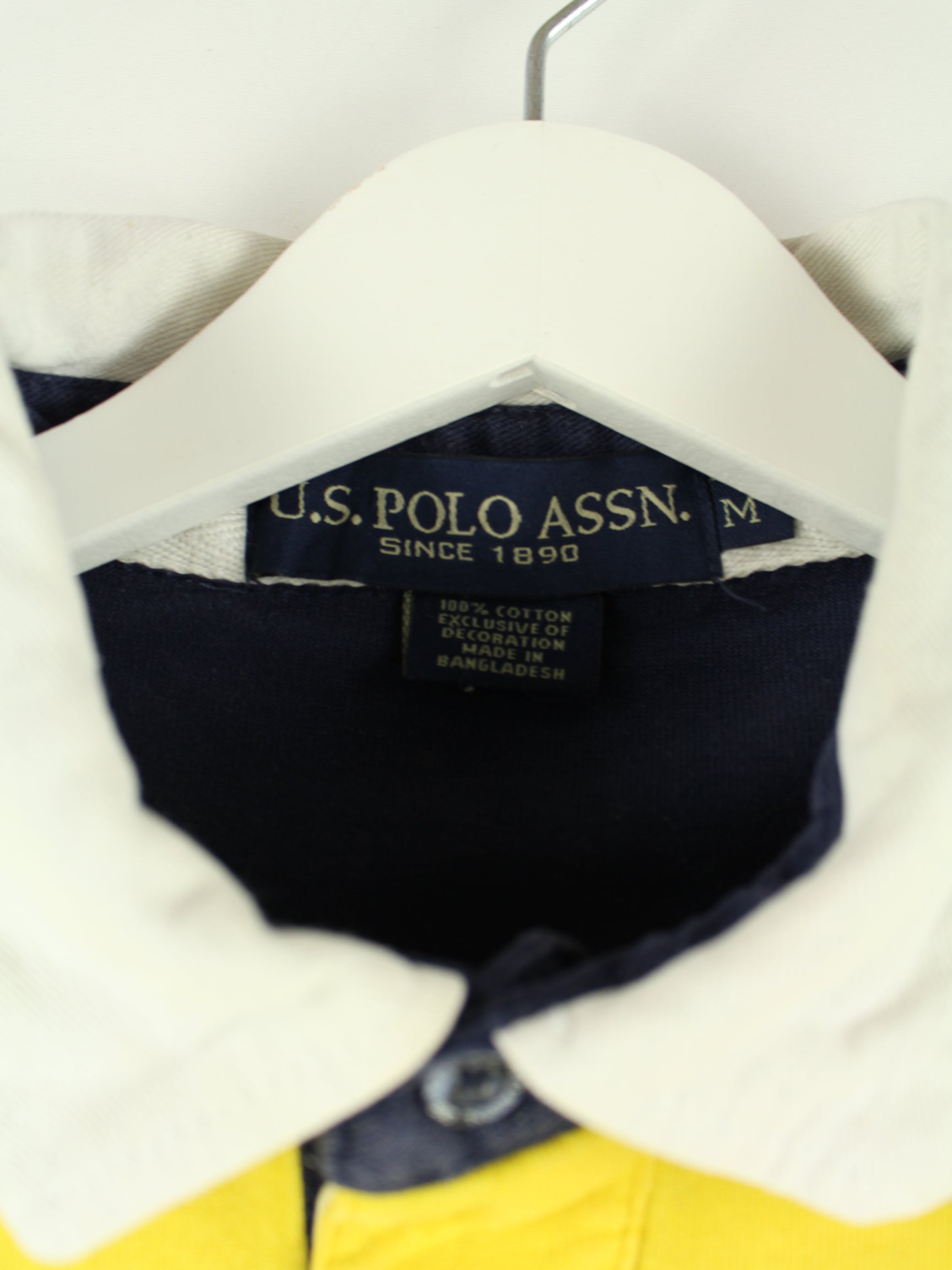Gelber Sweater mit gesticktem Logo der Brand U.S. Polo ASSN. aus Anfang der 2000'er in Größe M. Er ist aus einer Baumwollmischung gemacht und in gutem Zustand in Stock.