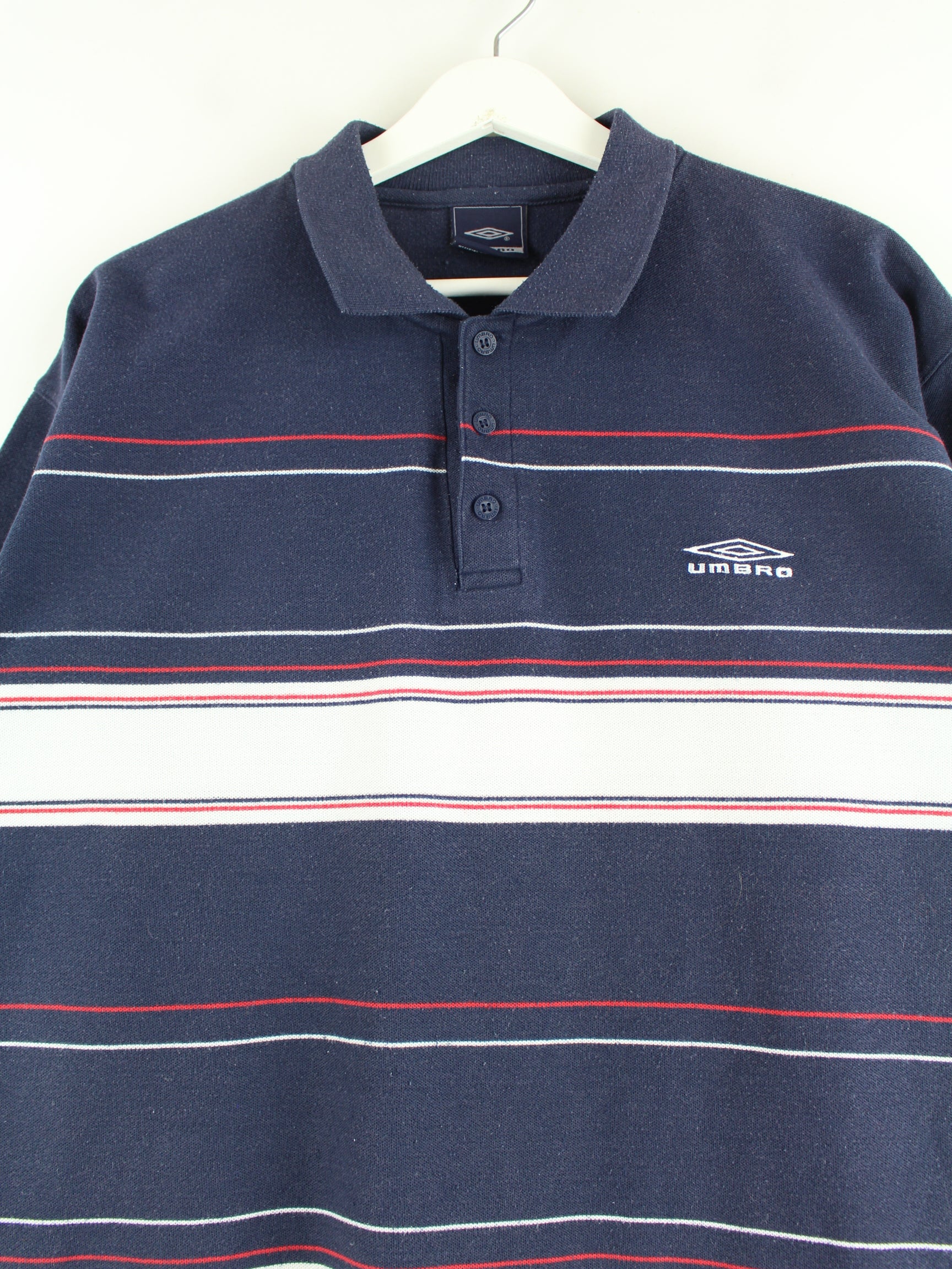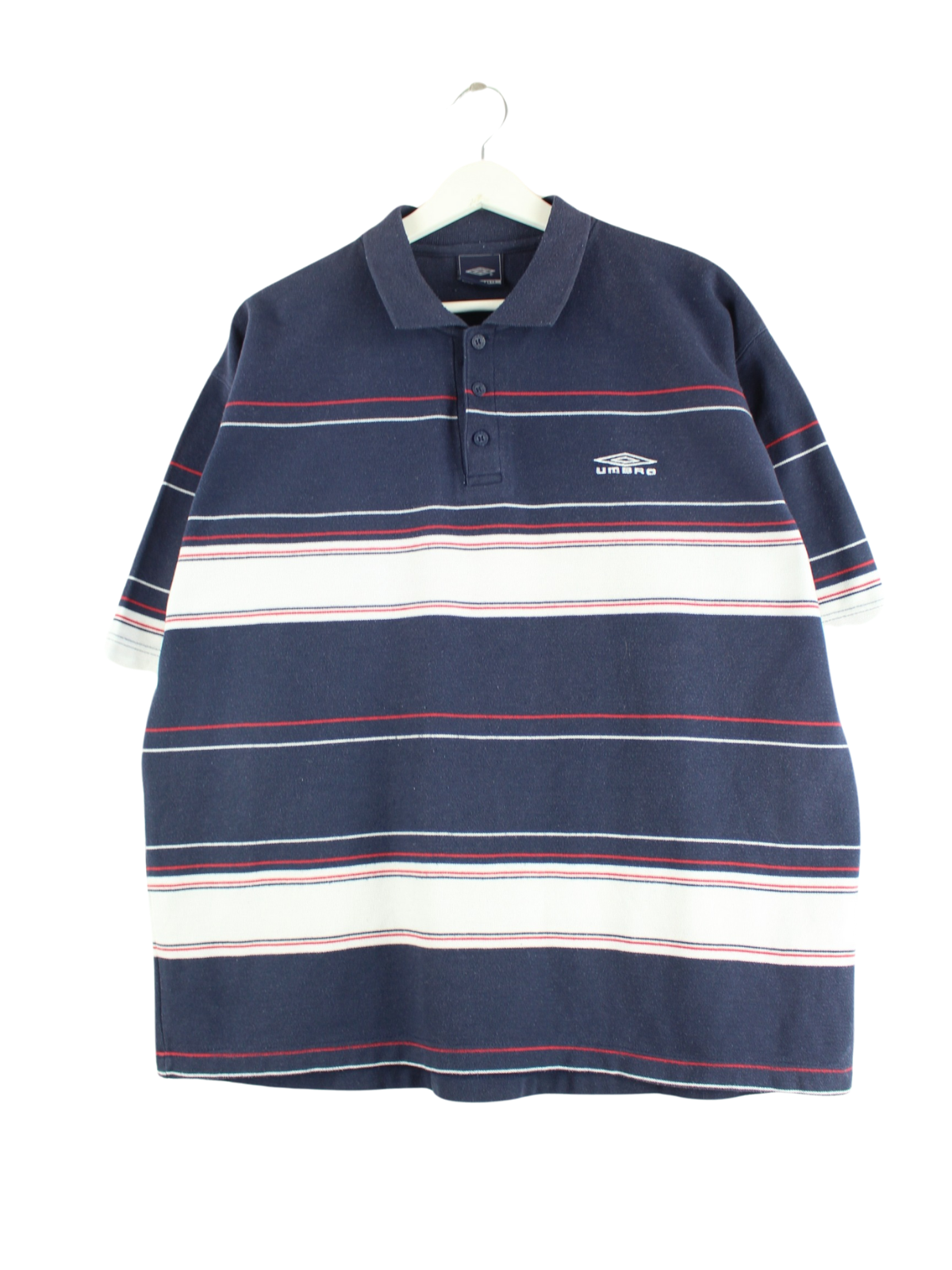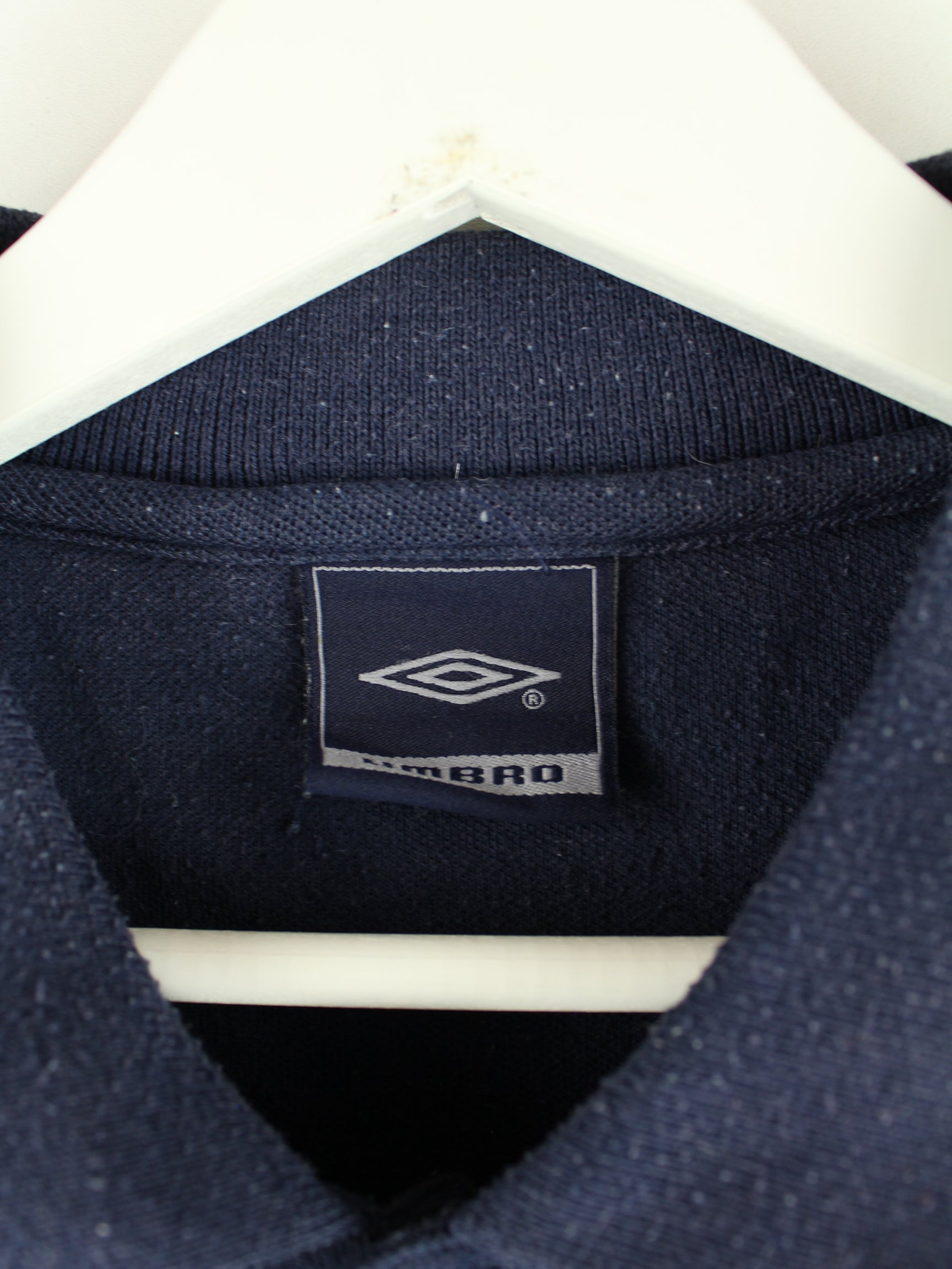 Blaues Poloshirt der Marke Umbro aus den 90'ern in Größe XL. Es ist aus Baumwolle produziert und in gutem Zustand in Stock.