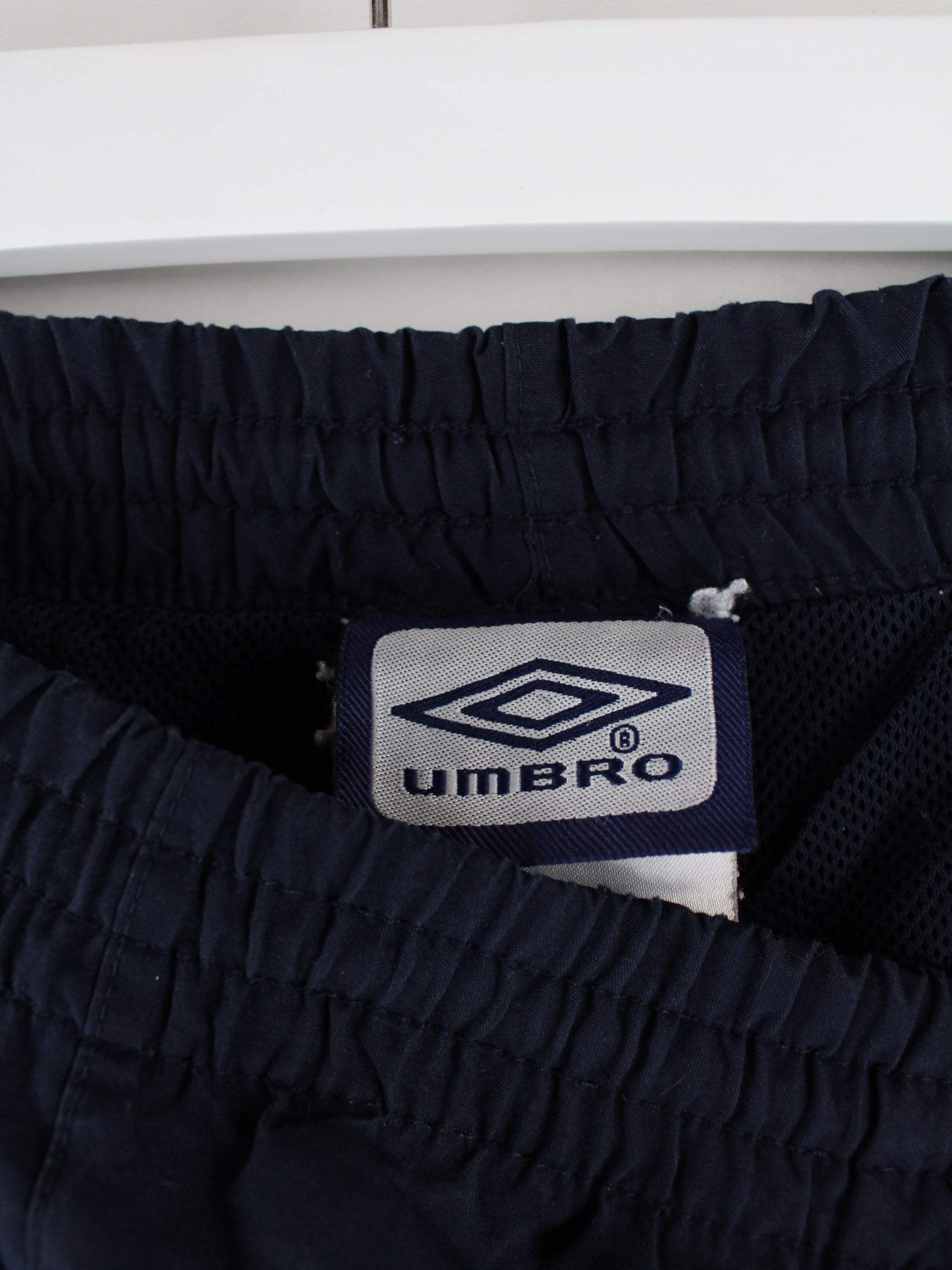 Blaue Track Pants von Umbro aus den 90'ern in Größe M. Sie sind aus Synthetik hergestellt und in sehr gutem Zustand im Angebot.