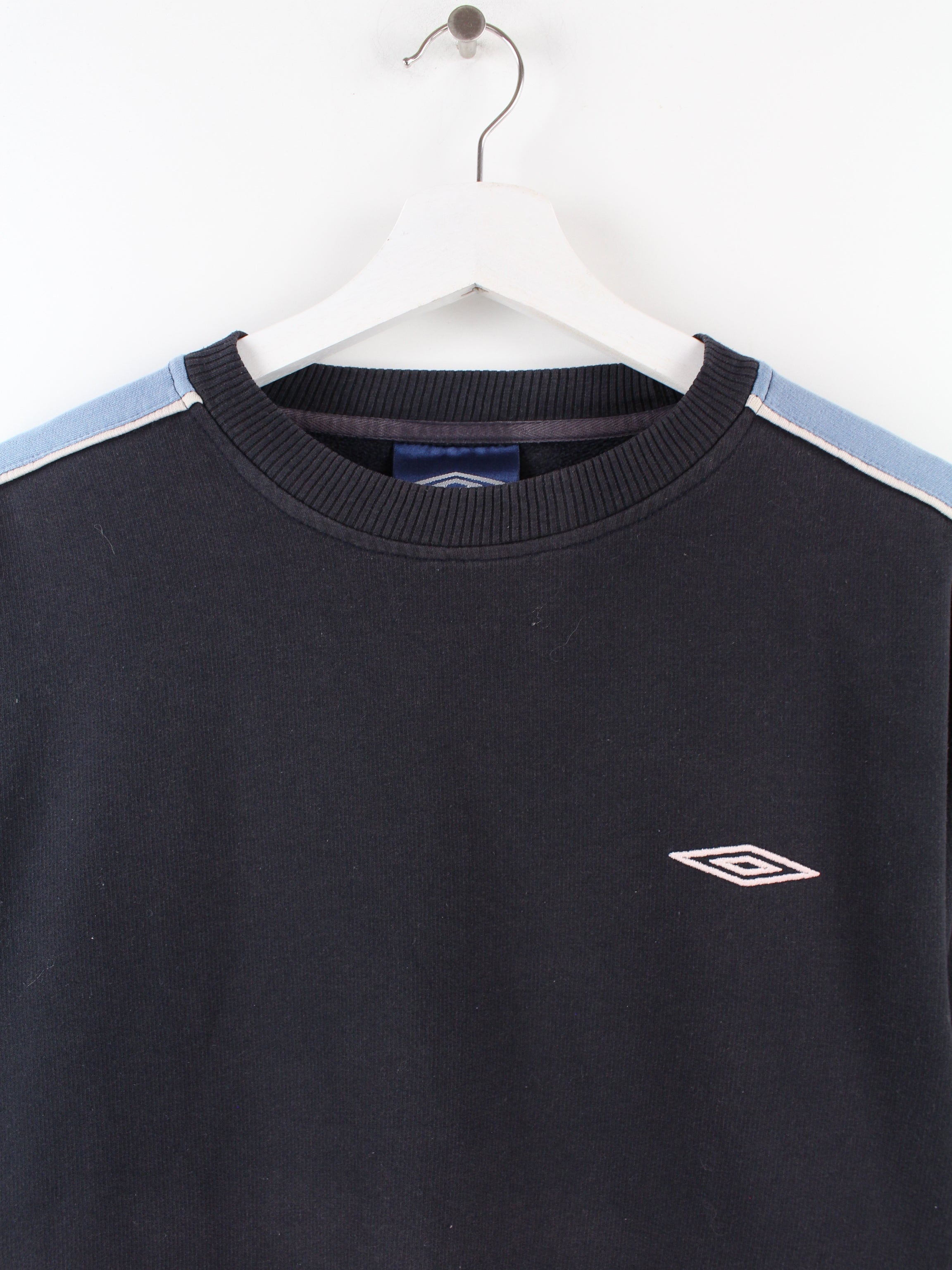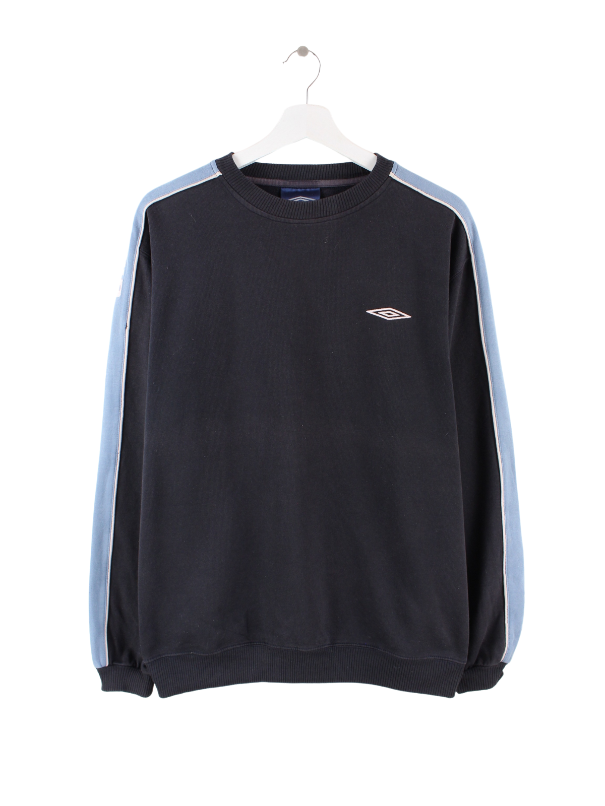 Schwarzer Umbro Sweater mit blauem Streifen auf dem Ärmel.