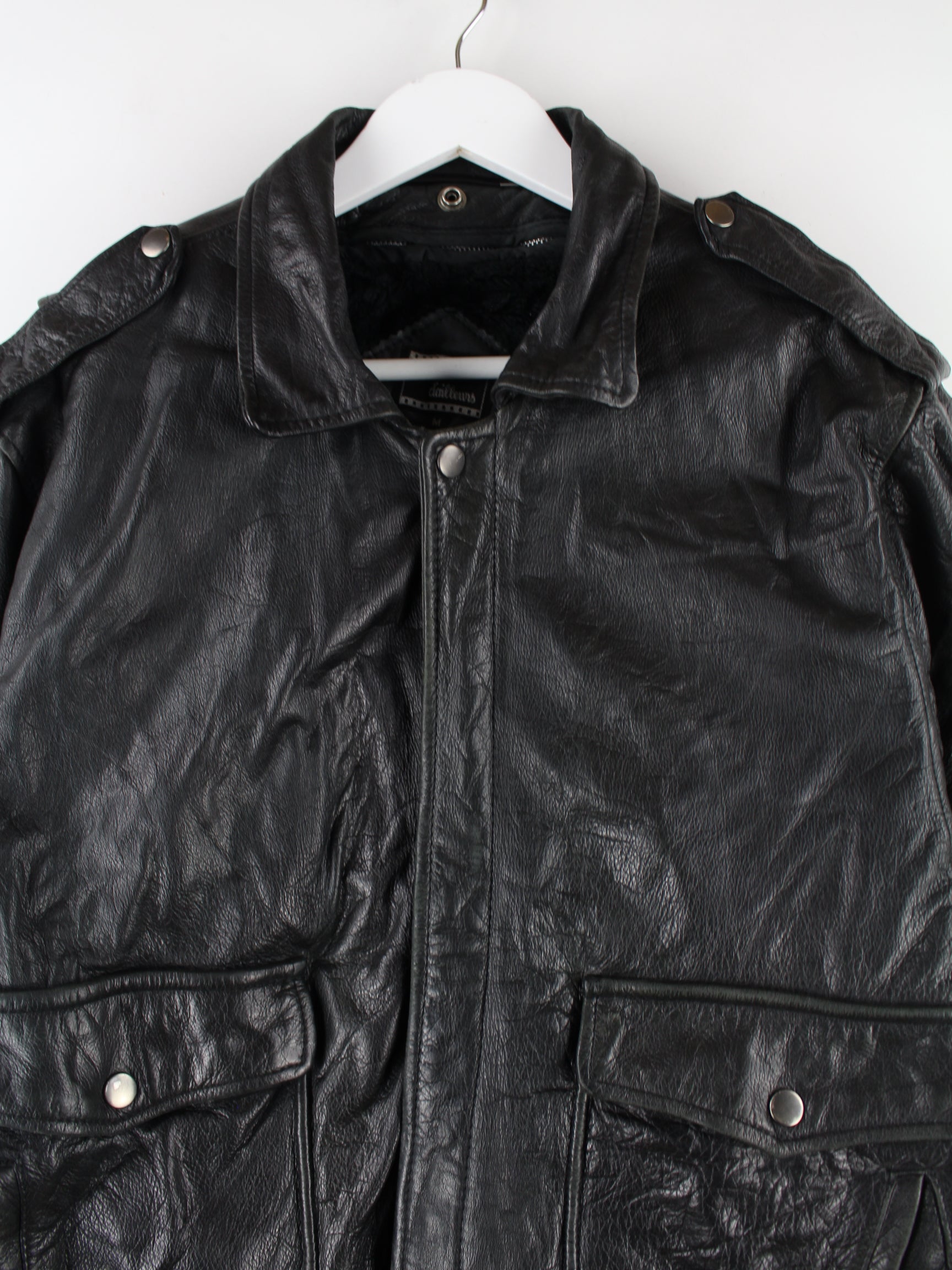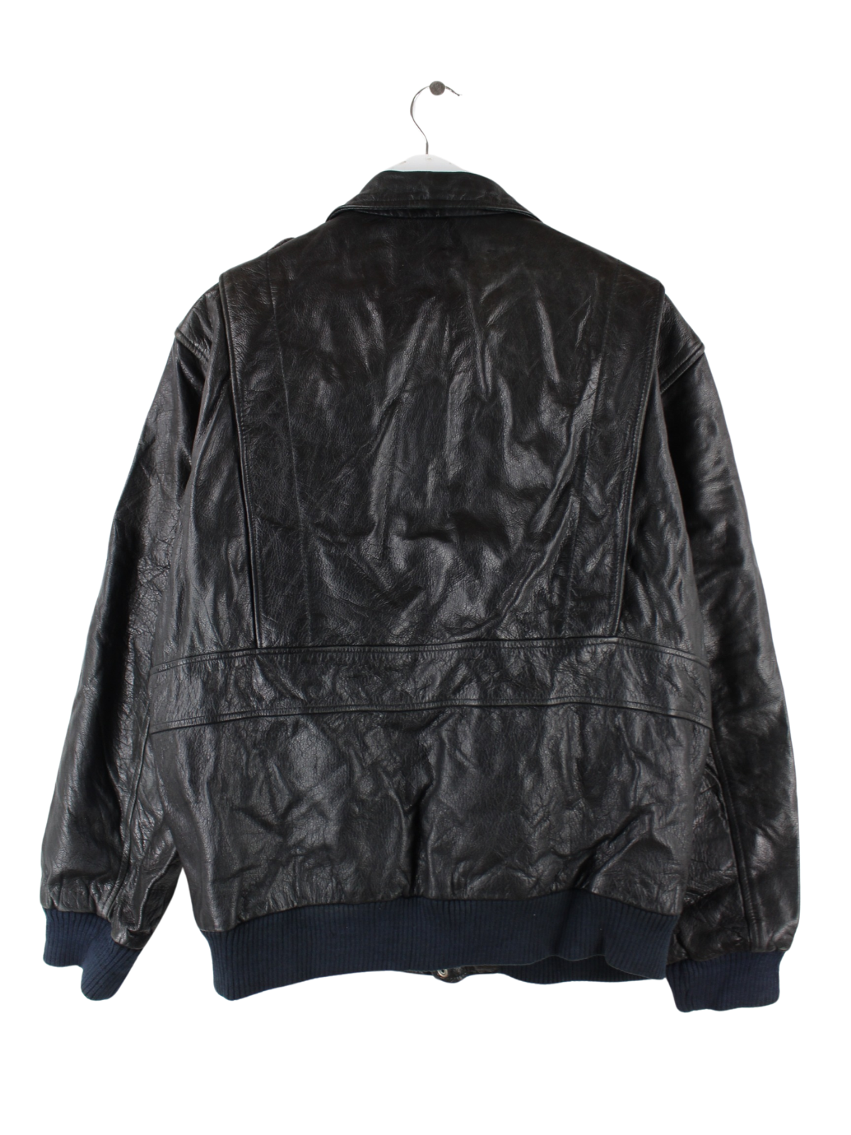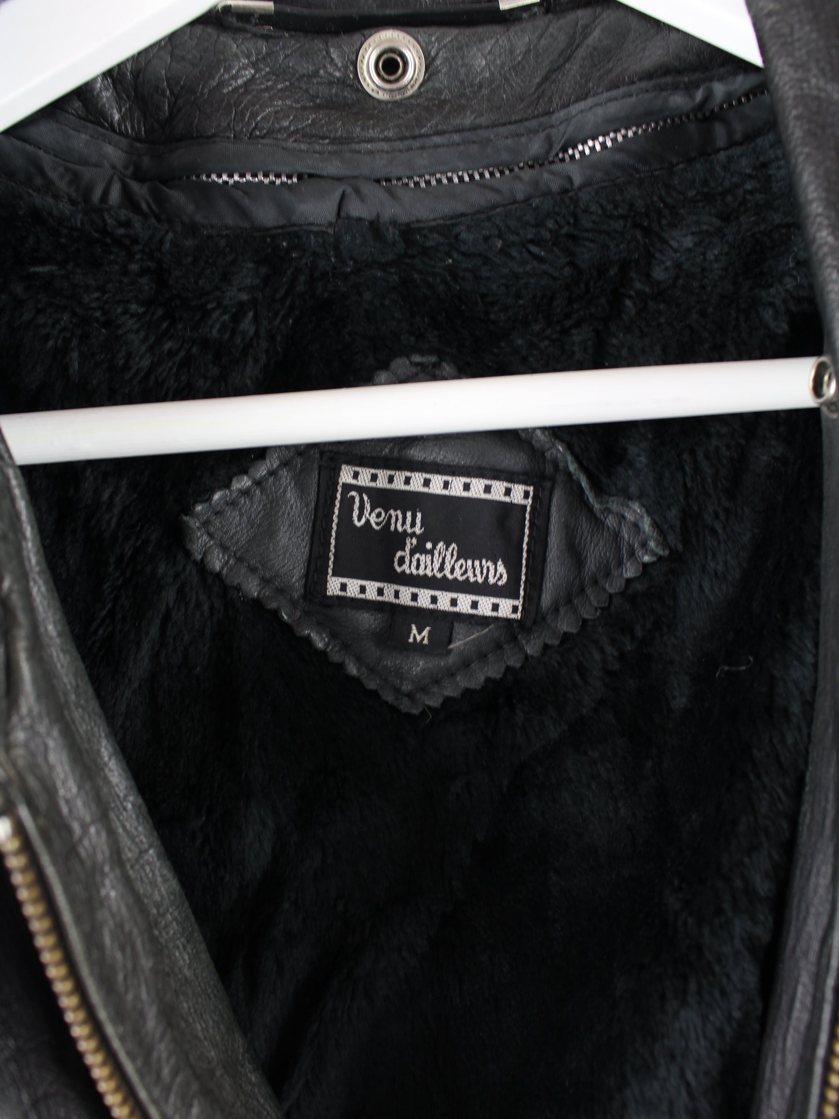 Vintage Jacke in Größe M aus den 90'ern. Sie ist aus Leder und in Schwarz vorrätig.
