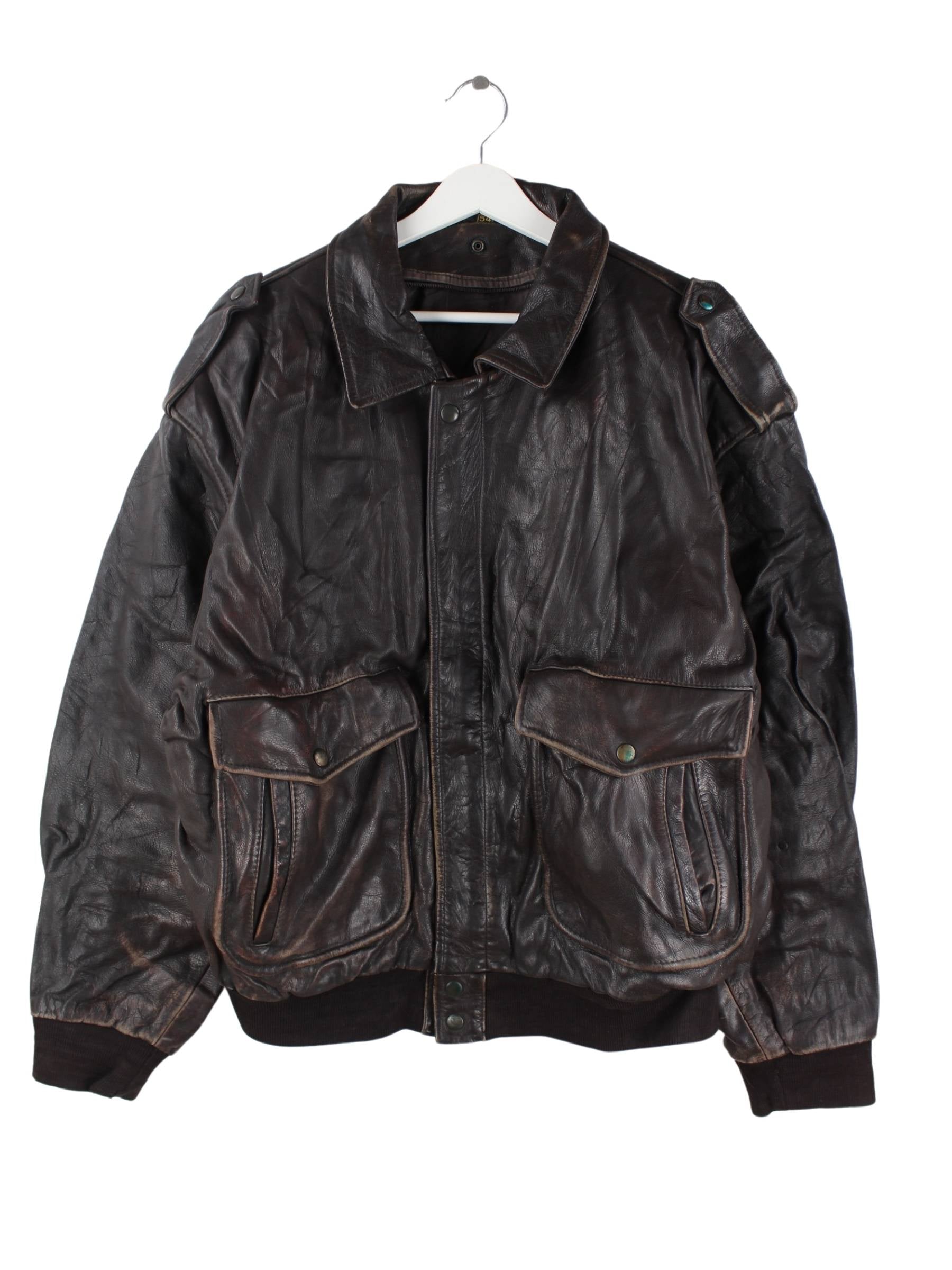 Braune Vintage Jacke aus den 90'ern in Größe L. Sie ist aus Leder hergestellt und in sehr gutem Zustand im Angebot.