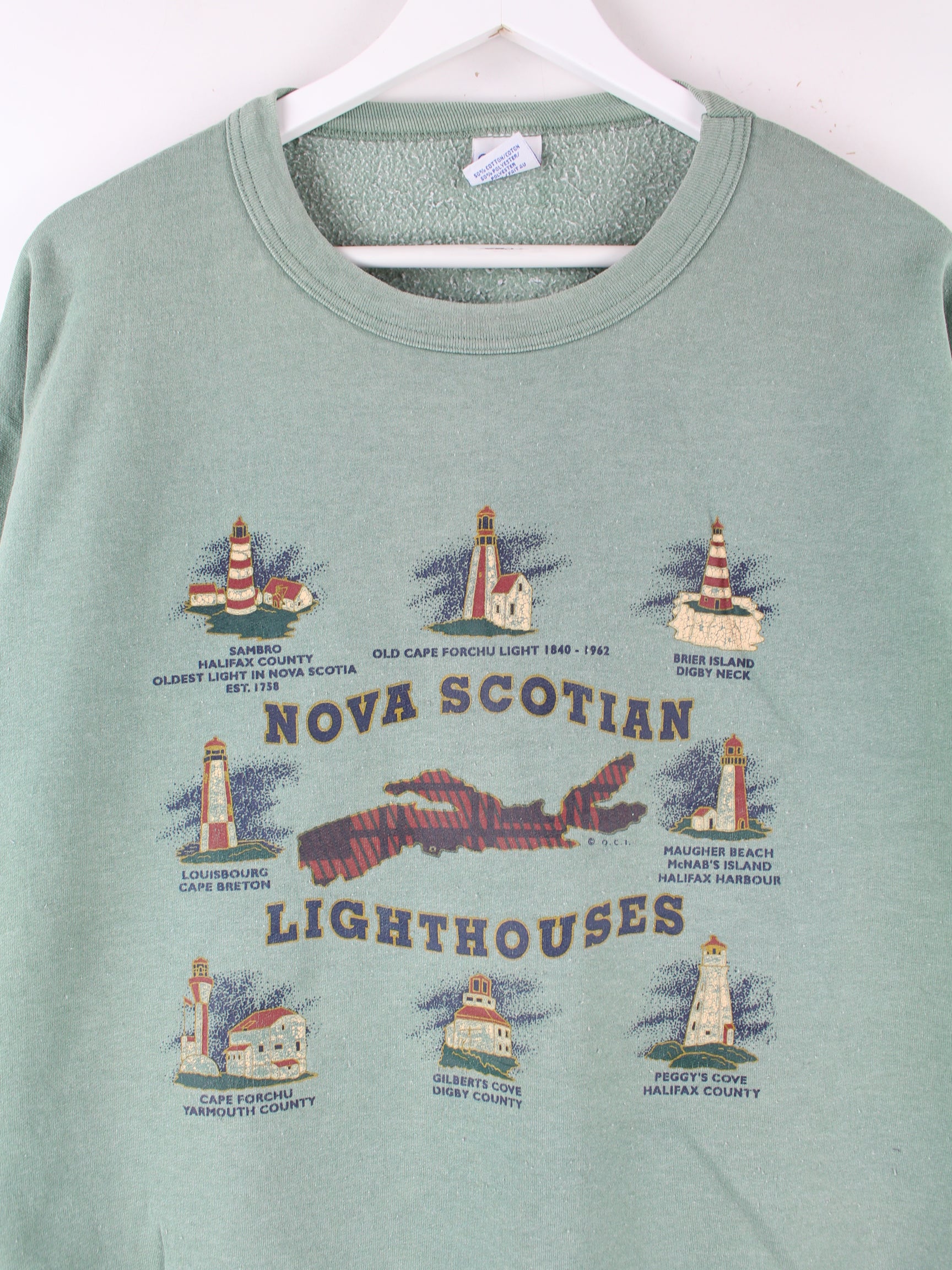Vintage 90s Lighthouse Print Sweater Grün XL