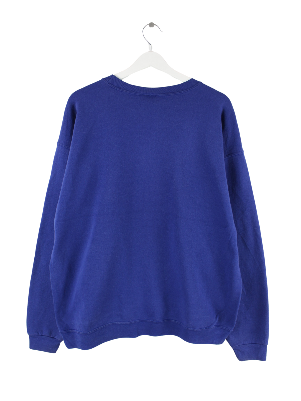Vintage Sweater in Größe XXL aus den 90'ern. Er ist aus einer Baumwollmischung angefertigt und in Blau lieferbar.