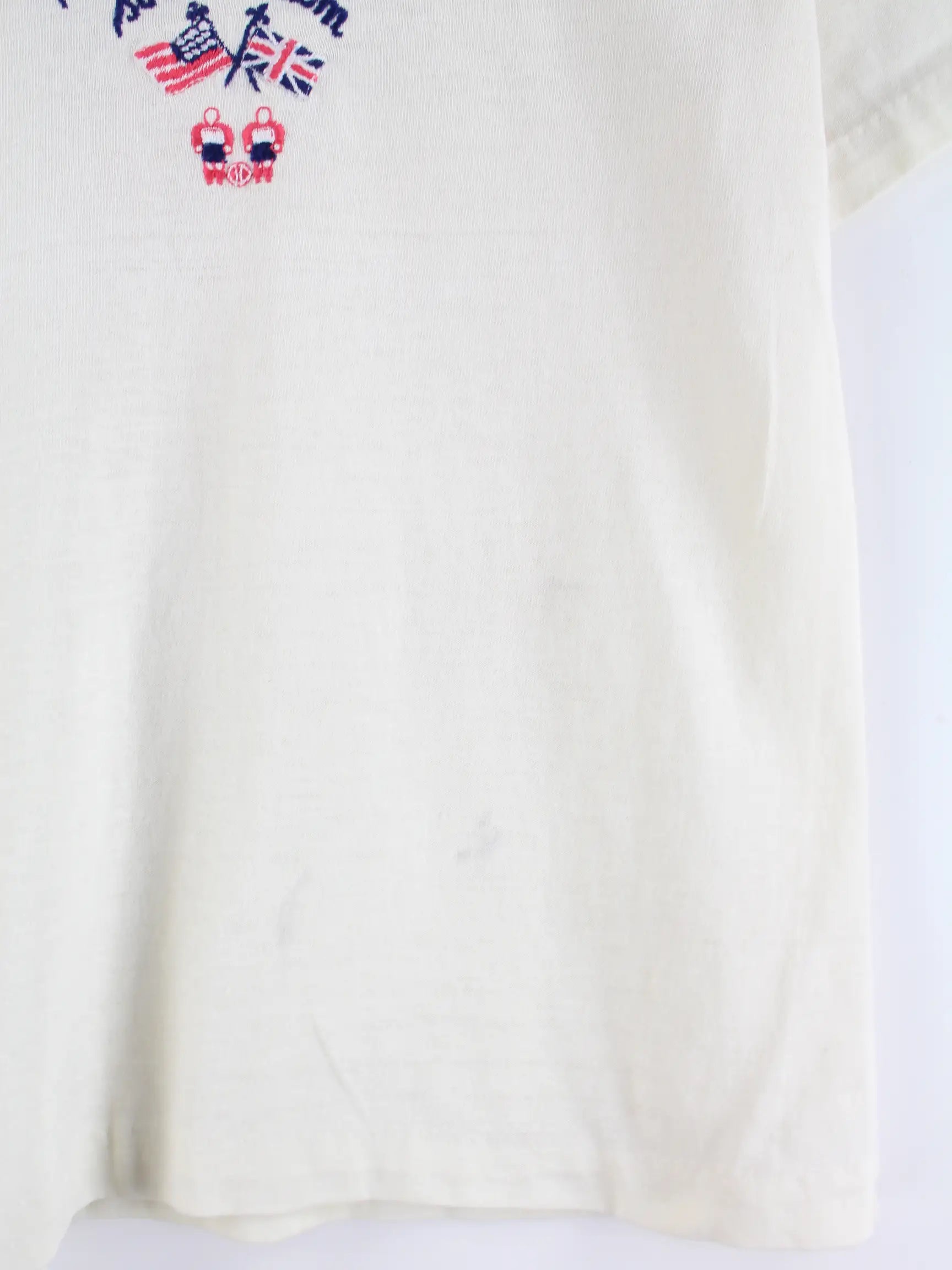 Vintage Damen 80s Embroidered Single Stitch T-Shirt Weiß M