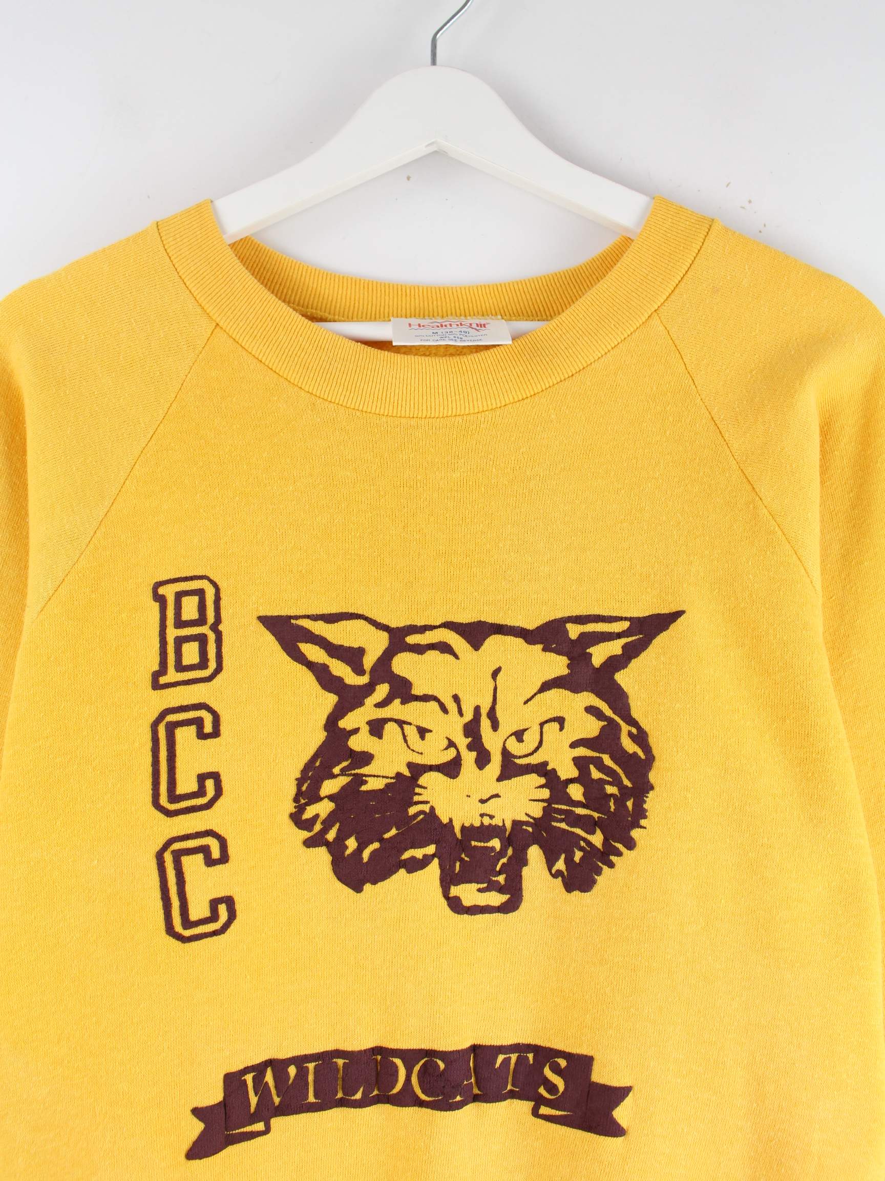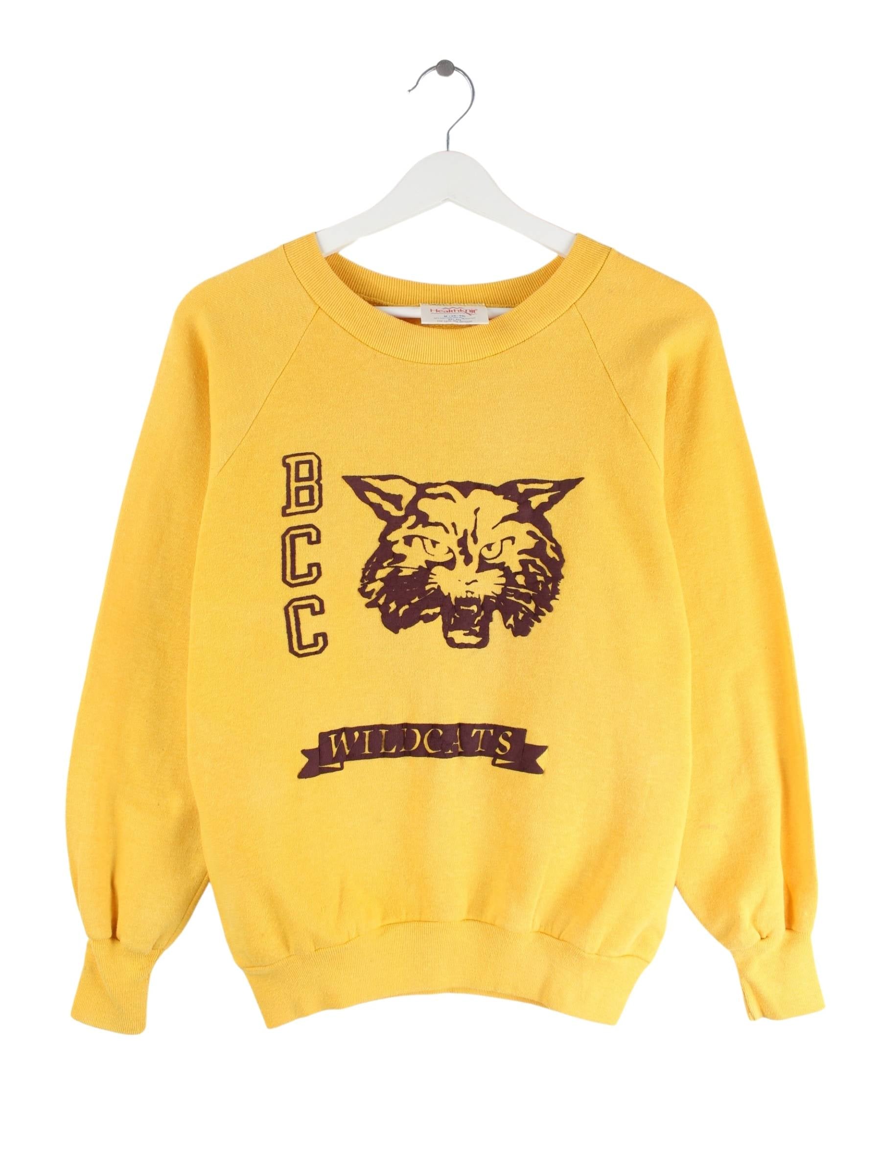 Vintage Damen 90s BCC Wildcats Print Sweater Gelb M