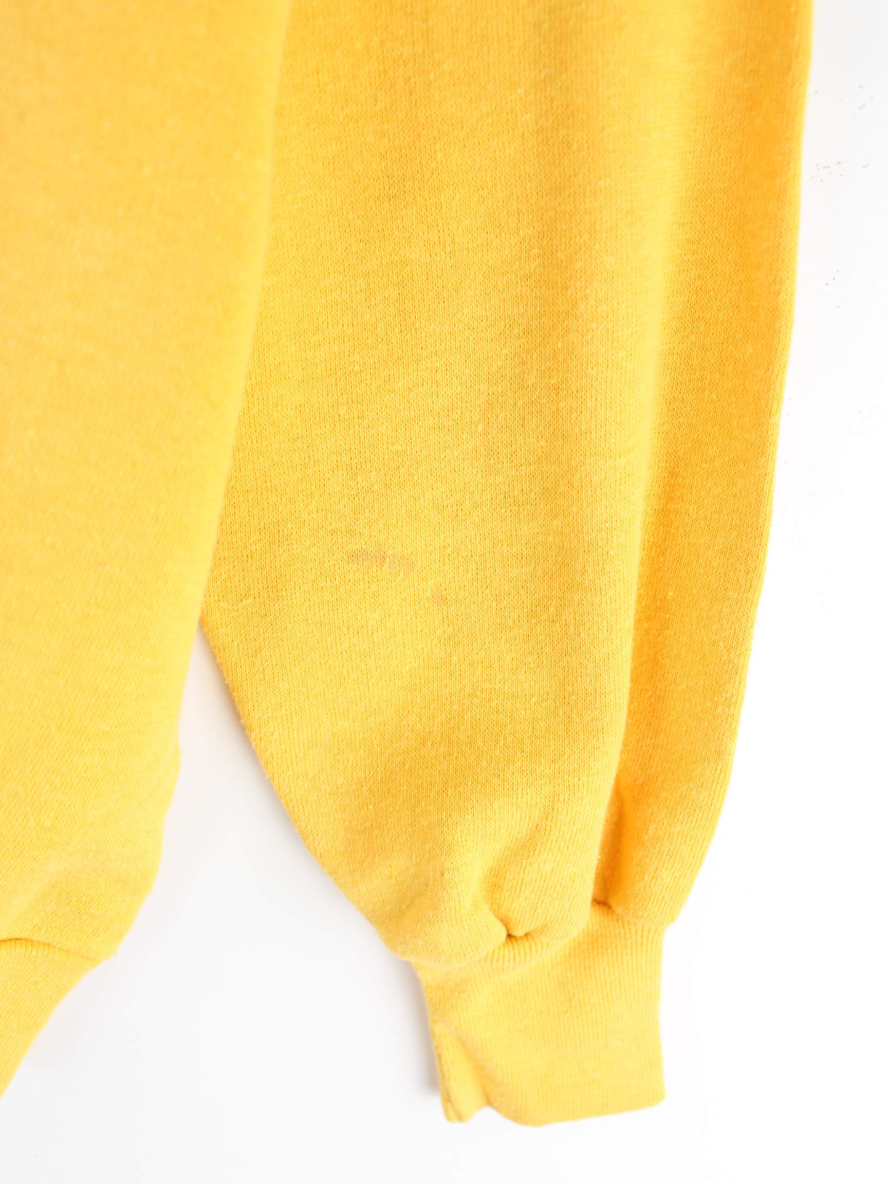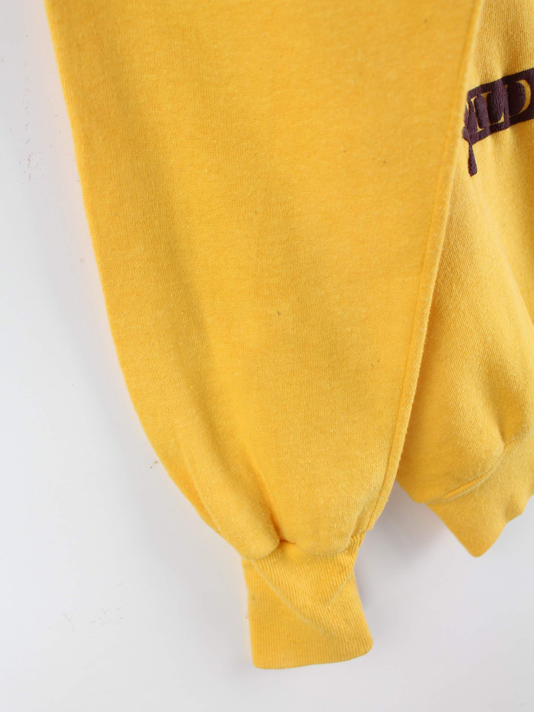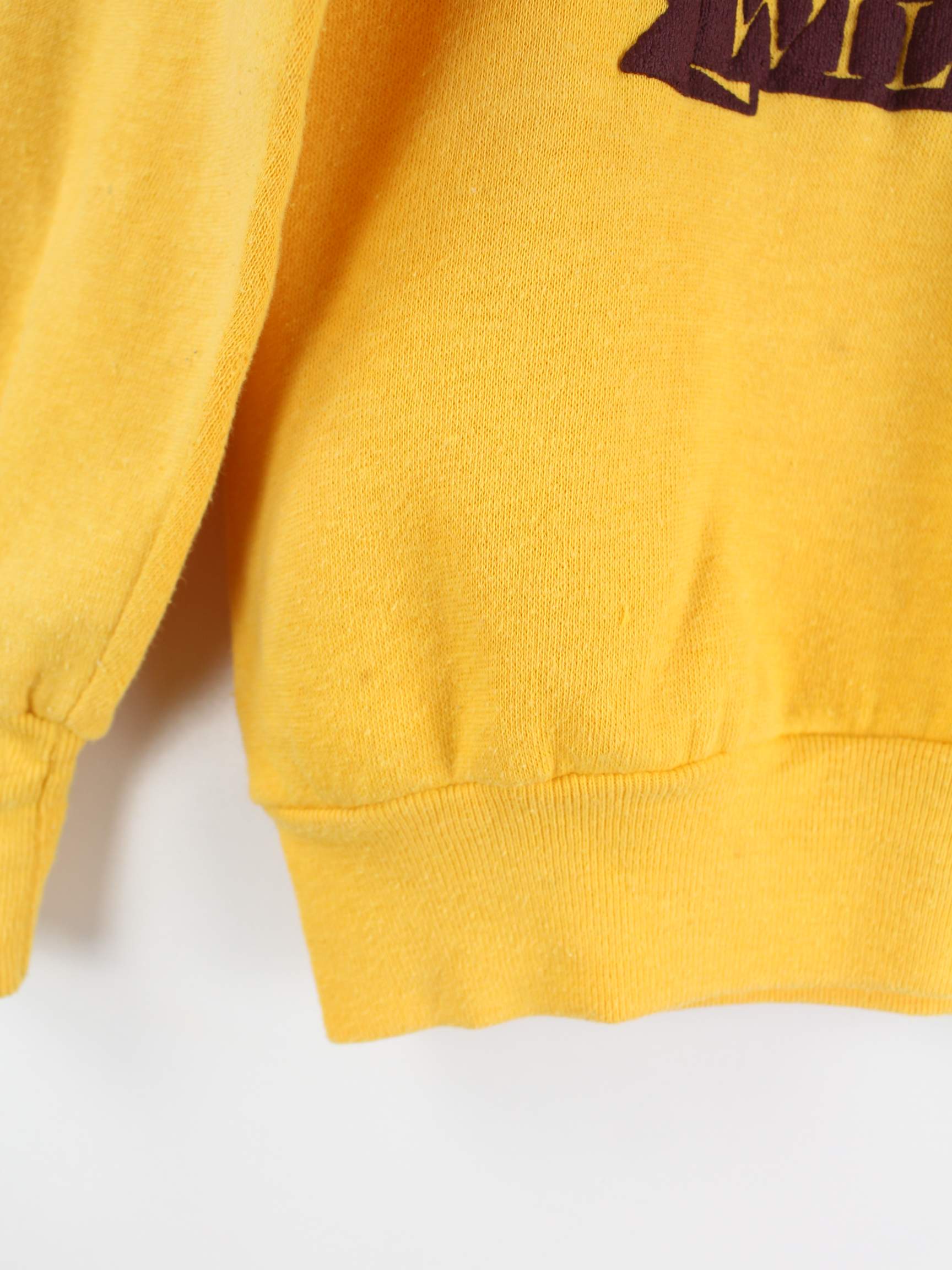 Gelber Vintage Sweater aus den 90'ern in Größe M. Er ist aus einer Baumwollmischung produziert. Den Zustand würden wir als 'In Ordnung' bezeichnen (vergl. Bilder).Mit schönem Wildcats Print.