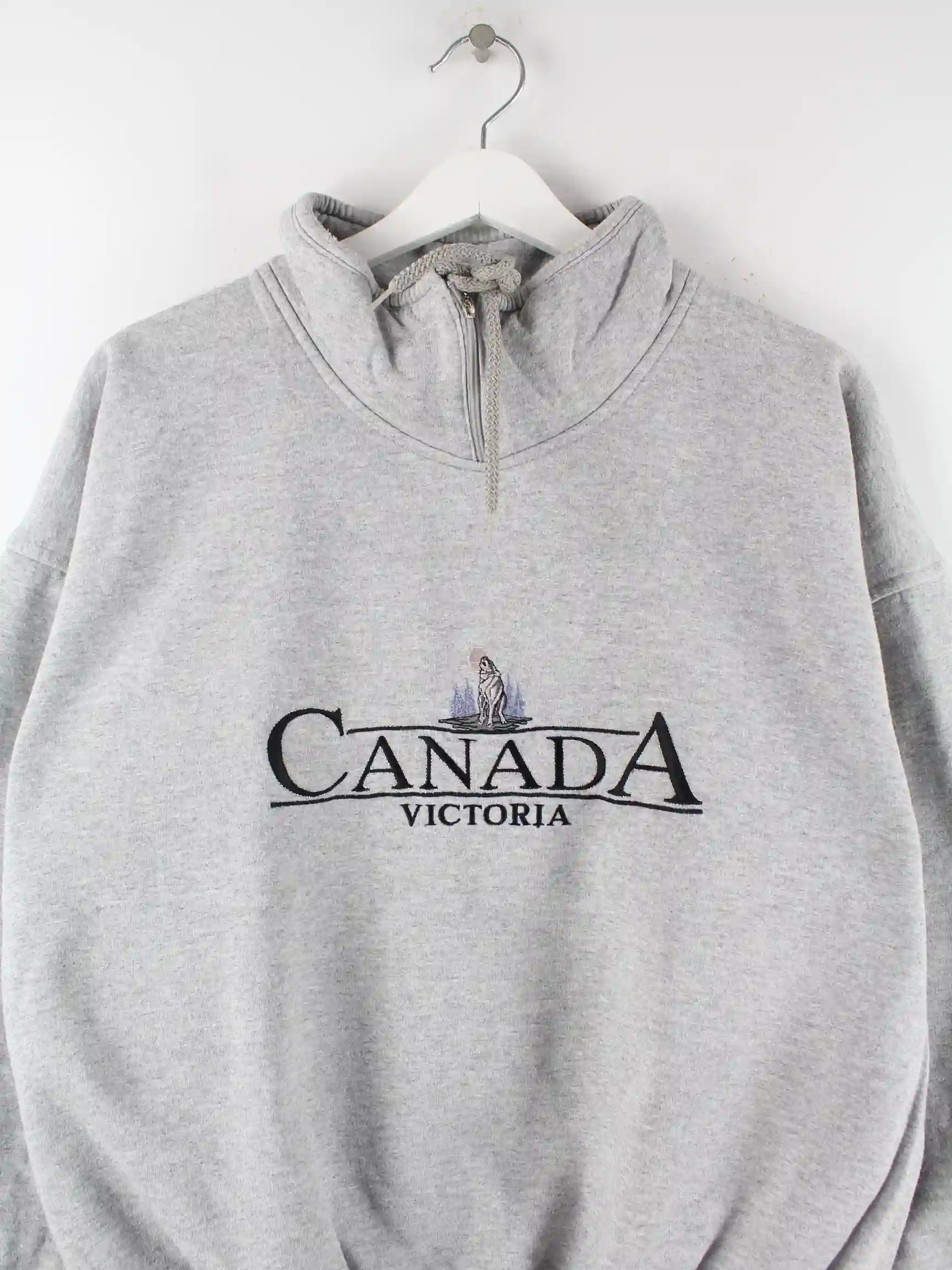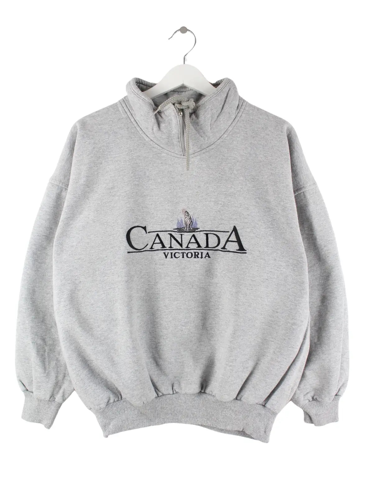 Vintage Damen 90s Canada Embroidered Half Zip Sweater Grau M