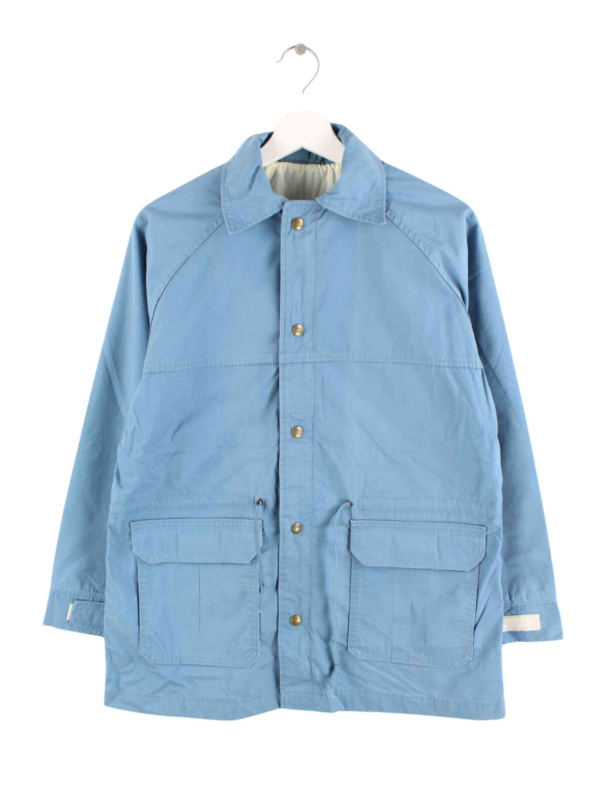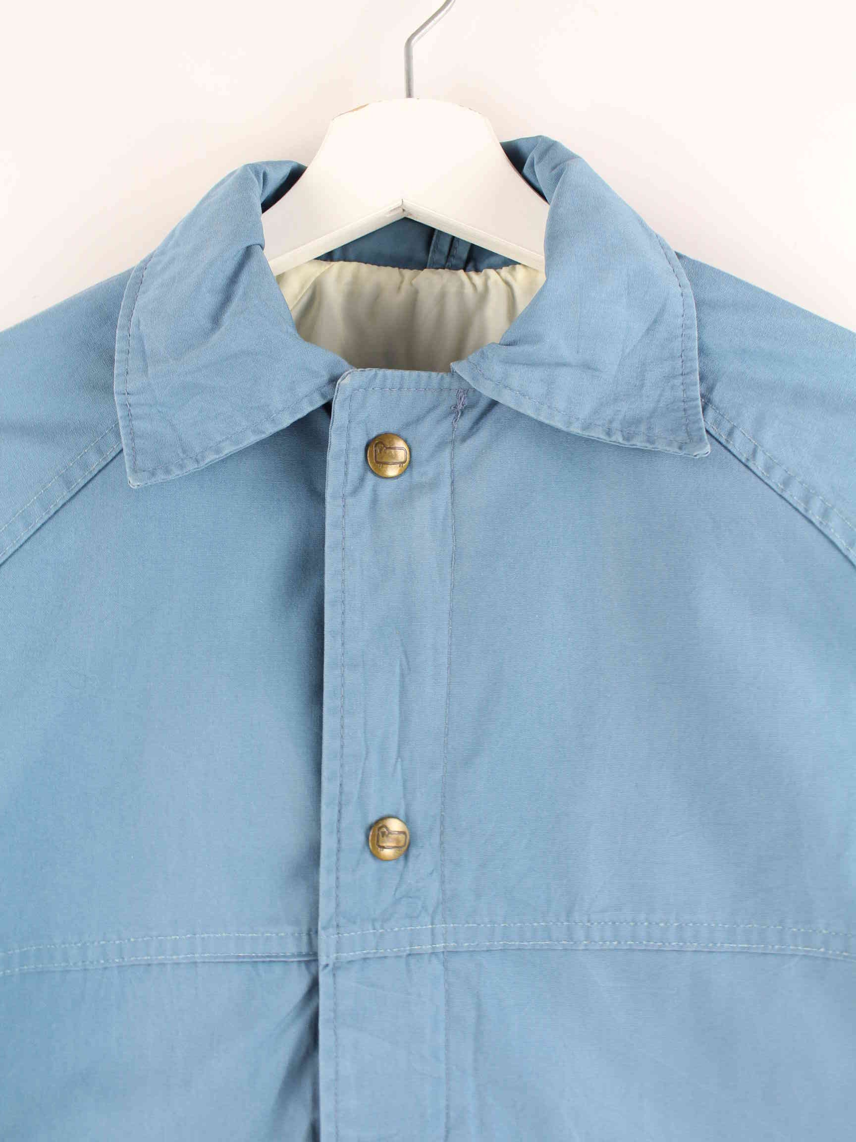 Blaue Leichte Jacke der Brand Woolrich aus den 90'ern in Größe M. Sie ist aus Synthetik angefertigt und in sehr gutem Zustand bei uns vorrätig.