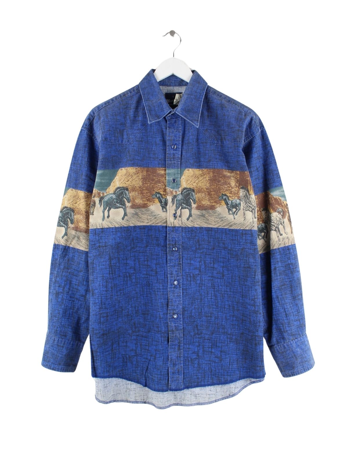 Wrangler 80s Vintage Cowboy Hemd Blau L