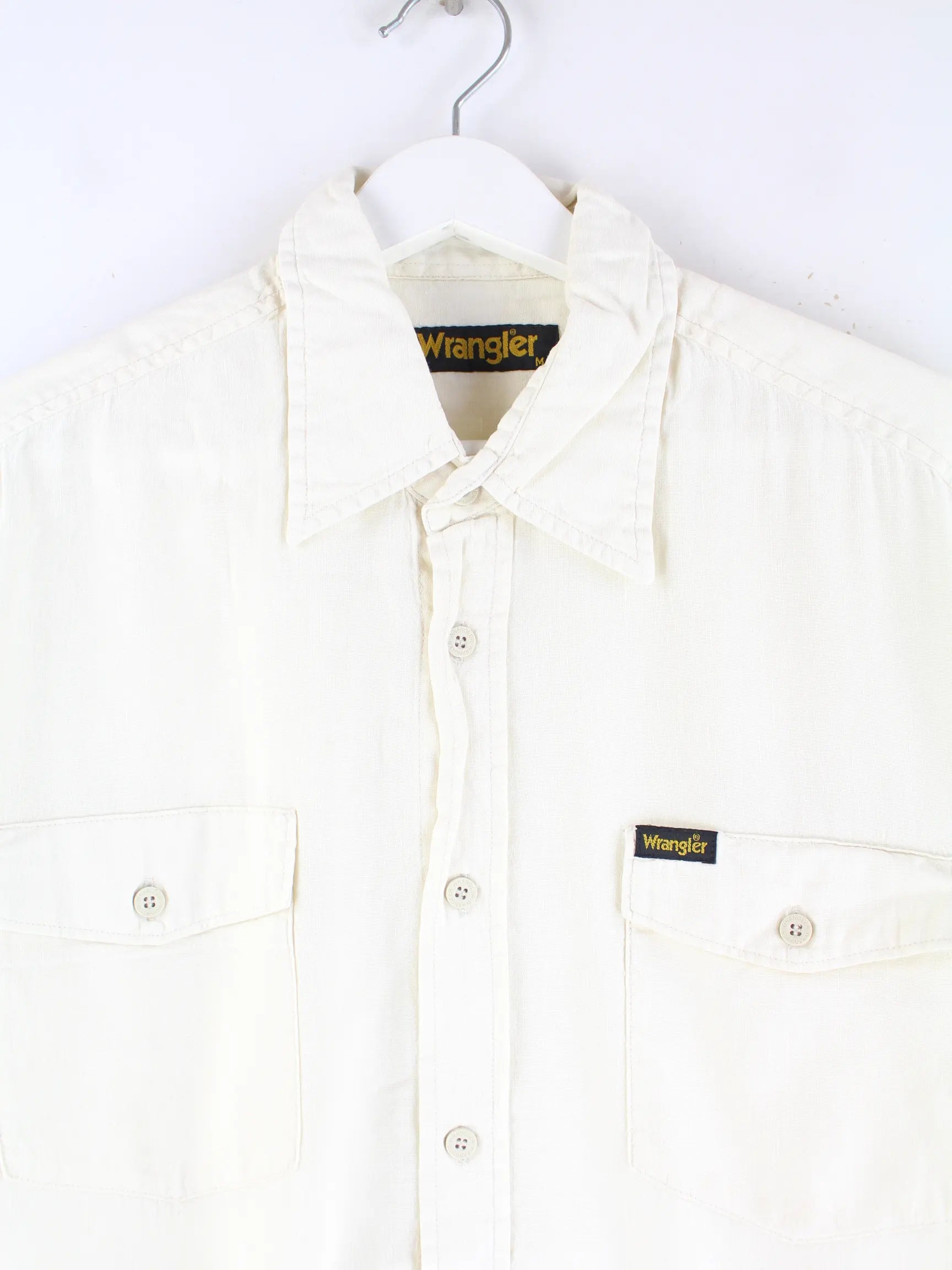 Wrangler 90s Vintage Leinen Kurzarm Hemd Beige M