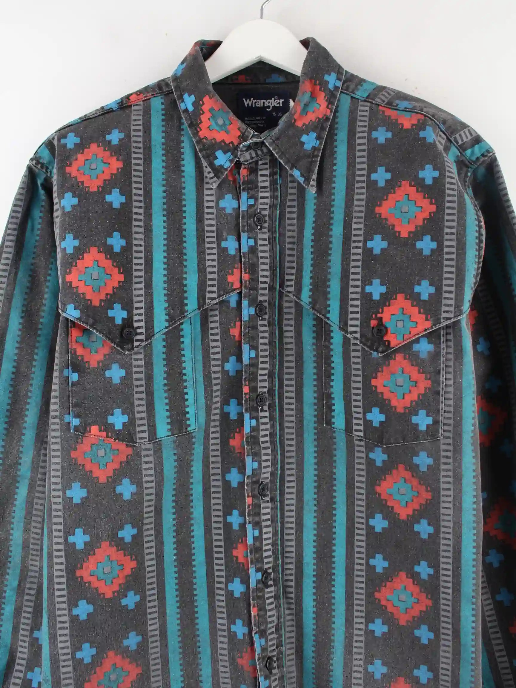 Wrangler 90s Vintage Navajo Pattern Hemd Grau XL